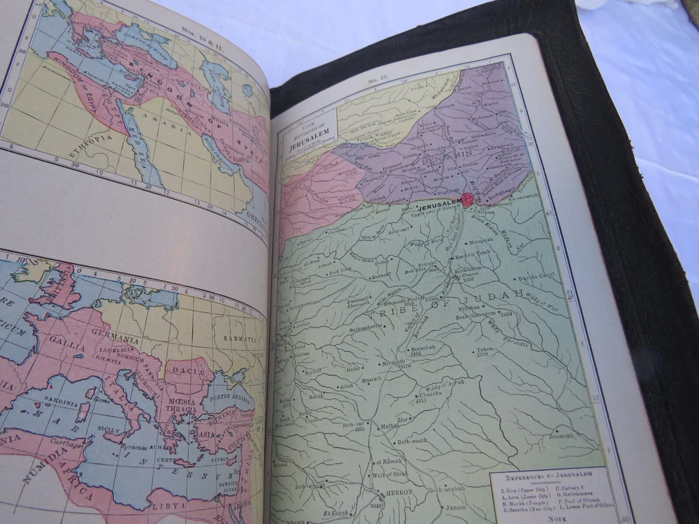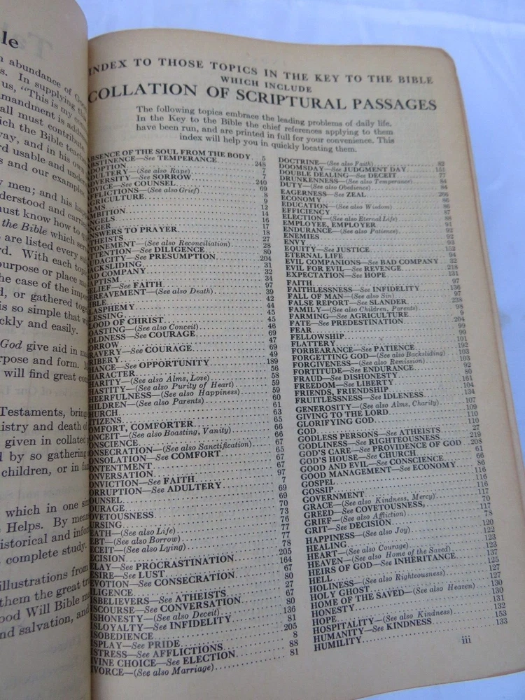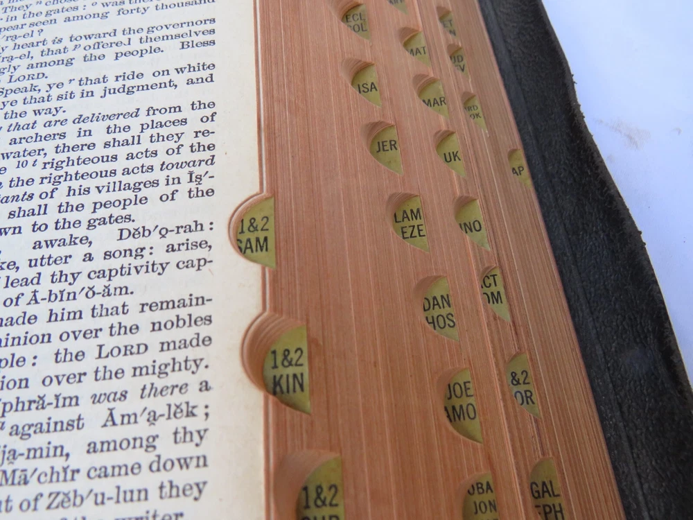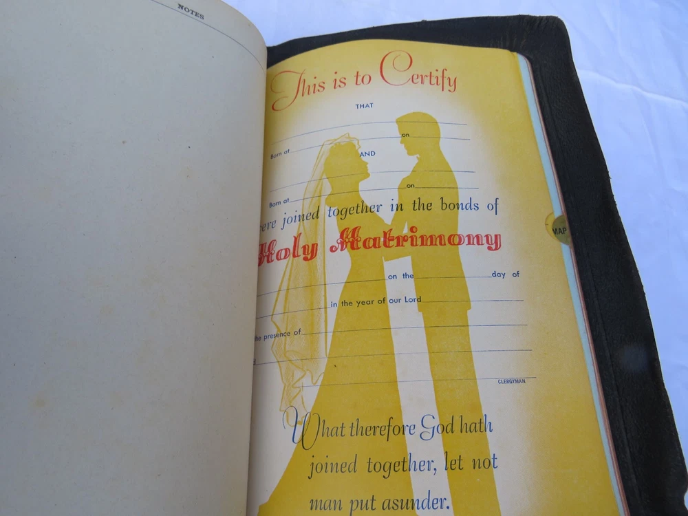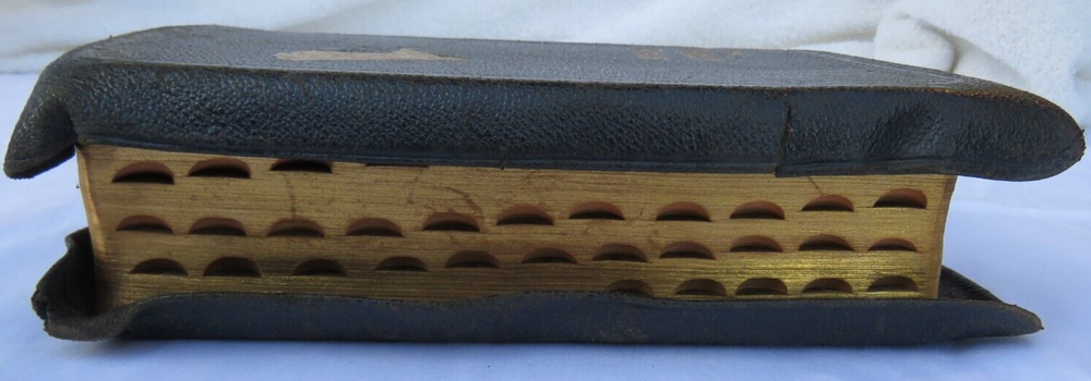 This exquisite Bible edition features a leather binding and gilded edges, perfect for collectors or those looking for a special addition to their library. The index along the edge and illustrations add to its charm and functionality. Published in 1943 by National, this Bible includes the full text of the Holy Bible, and is a great reference for those interested in Christianity and religious studies. The book is written in English and features various authors, covering a range of topics and subjects. This original edition is a must-have for any book collector or enthusiast. You will be receiving the item shown in the pictures. We can combine shipping.