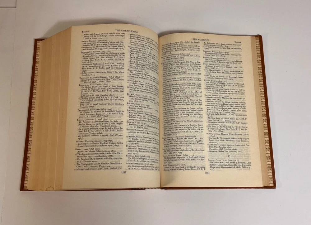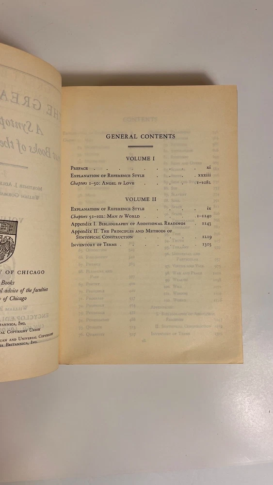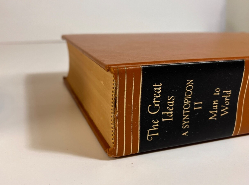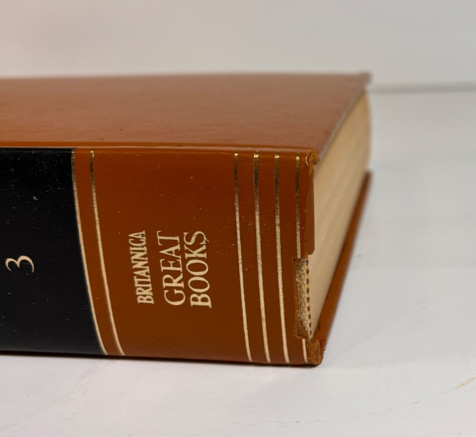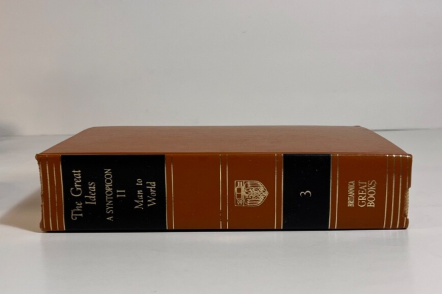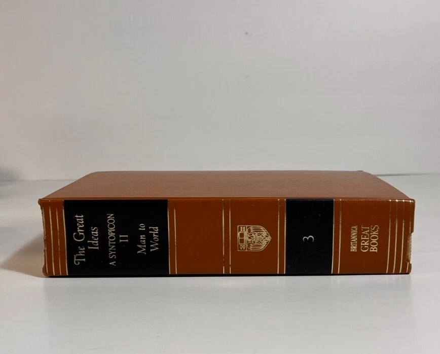 Volume 3: The Great Ideas A Syntopicon II ~ Man to World General Contents: VOLUME I Preface Explanation of Reference Style Chapters 1-50: Angel to Love VOLUME II Explanation of Reference Style Chapters 51-102: Man to World Appendix I: Bibliography of Additional Readings Appendix II: The Principles and Methods of Syntopical Construction Inventory of Terms [SUBJECTS: In Alphabetical Order] Man Mathematics Matter Mechanics Medicine Memory and Imagination Metaphysics Mind Monarchy Nature Necessity and Contingency Oligarchy One and Many Opinion Opposition Philosophy Physics Pleasure and Pain Poetry Principle Progress Prophecy Prudence Punishment Quality Quantity Reasoning Relation Religion Revolution Rhetoric Same and Other Science Sense Sign and Symbol Sin Slavery Soul Space State Temperance Theology Time Truth Tyranny Universal and Particular Virtue and Vice War and Peace Wealth Will Wisdom World Estate Find! Explore the world of literature with this amazing book, " Britannica Great Books Of The Western World 1952 Vol. 3 " by William Gorman and Mortimer J. Adler. This hardcover book, black label and gold lettering, published by Encyclopedia Britannica, is an original piece printed in 1952 in the United States. It is a must-have for any book collector or literature enthusiast. This book, belonging to the category of Books & Magazines, is a valuable addition to any collection. This hardcover edition is numbered and has special attributes that make it unique. This book is a great representation of the North American region and is sure to be a treasured possession for years to come. Looks great in a classic bookshelf! Measures 9-1/2" x 6-3/4" (9.5 x 6.75 inches). See my other editions listed separately. Condition is a Very Good vintage ( natural pages may show toning consistent with antique items as this item is over 73 years old ; some minor impressions on the corners of the book, some water marks, and some curbing on the edges of the binding - please peruse photos!! ) We Accept Offers!