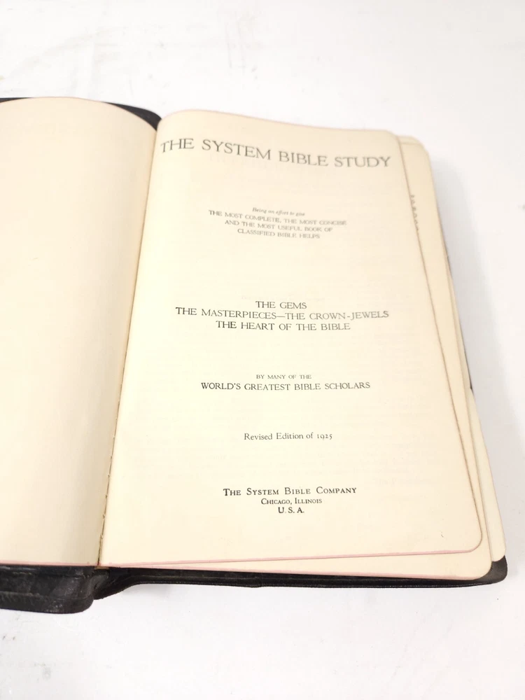Vtg 1925 The System Bible Study Black Leather Please inspect the pictures and message me if you have any questions. Item pictured is the actual item that will be received.