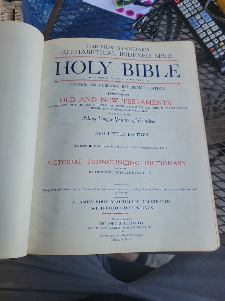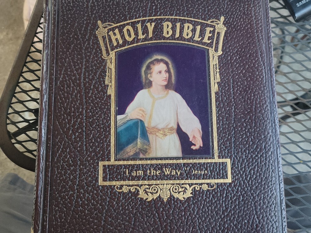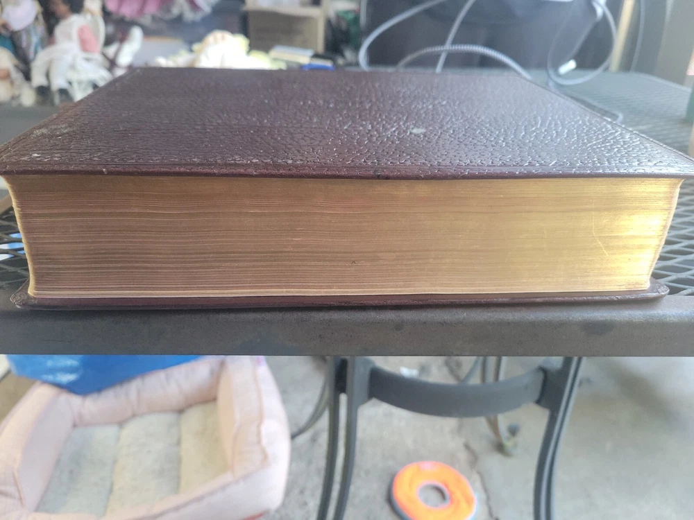 This vintage Holy Bible from the 1950s features large indexed tabs, red letter text, and beautiful illustrations. The book is a historical nonfiction piece that provides a reference for religious beliefs and practices. The faux leather bound format adds to the aesthetic appeal of this piece, making it a great addition to any collection. The publication year of 1957 adds to the value of this book, and it is intended for young adults and adults. This Bible is a great resource for anyone interested in religious and spiritual topics, and its special attributes make it a unique and valuable piece. Don't miss out on the opportunity to add this vintage Holy Bible to your collection.