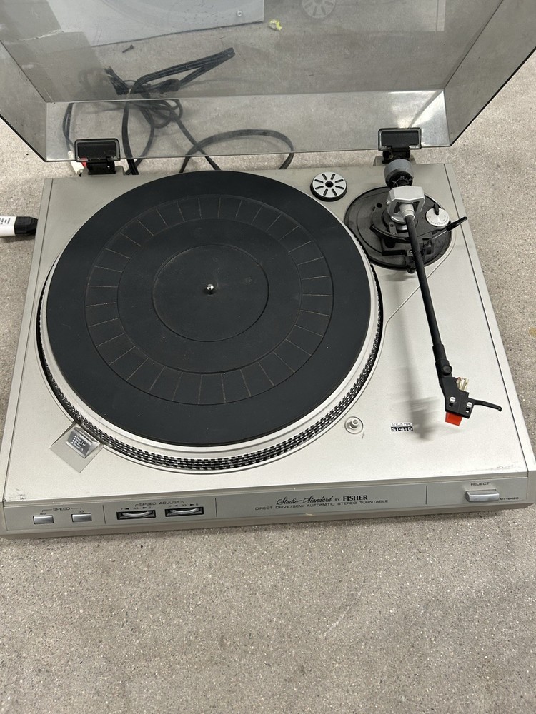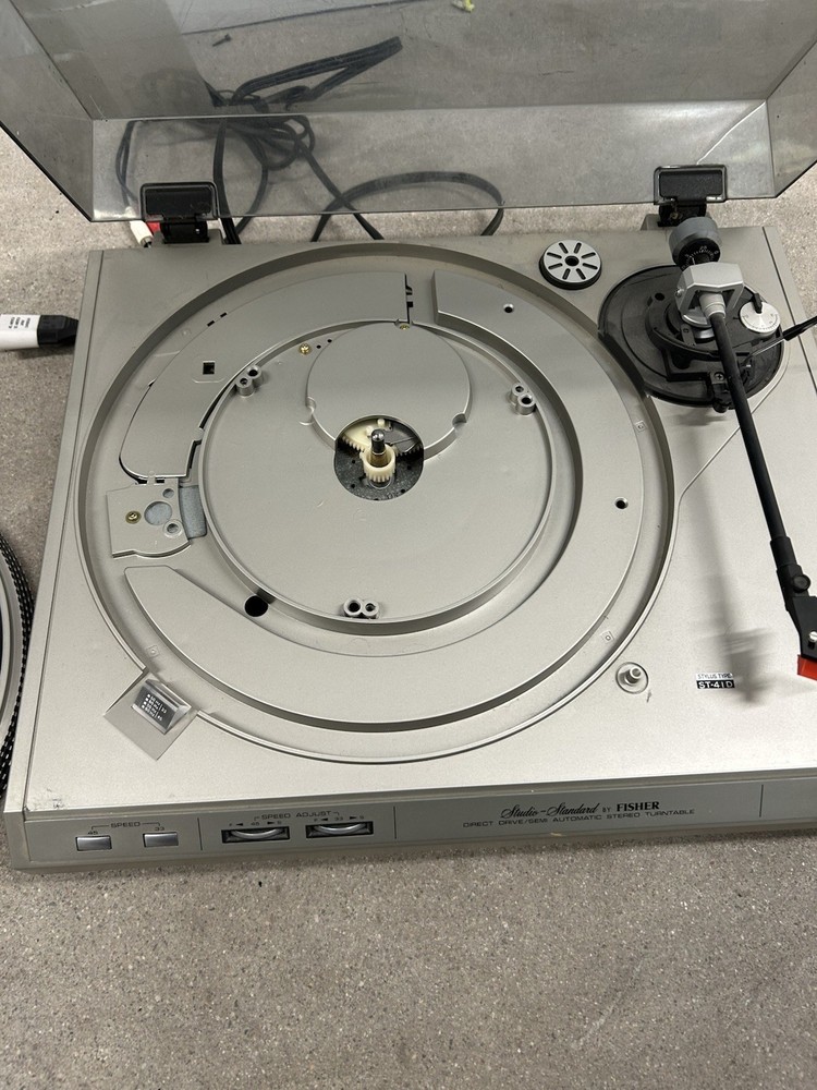 This turn table turns on and spins but other than that I do not know if it works properly or not. The clip to hold the arm has been snapped off shown in photos but other than that appears to be in perfect condition. This turntable comes with an American plug adapter it is foreign plug from the factory shown in photos.