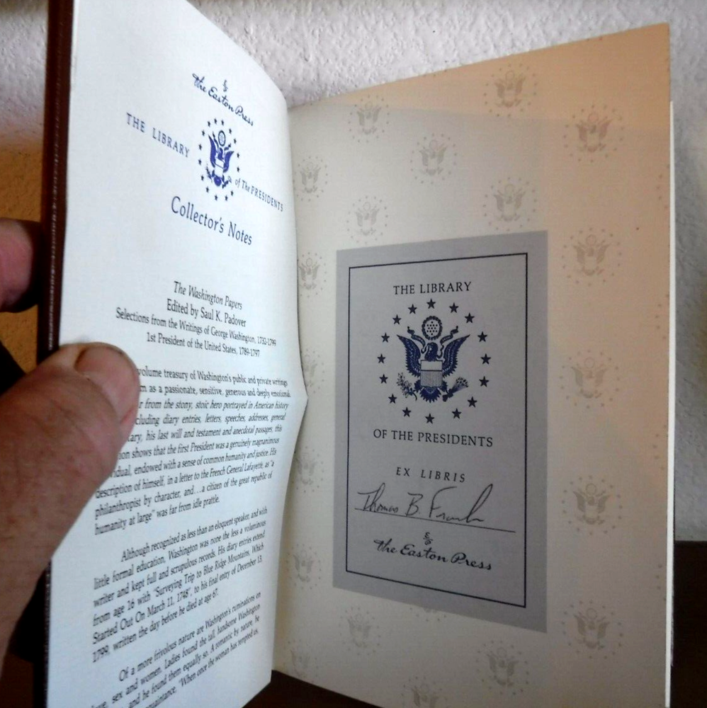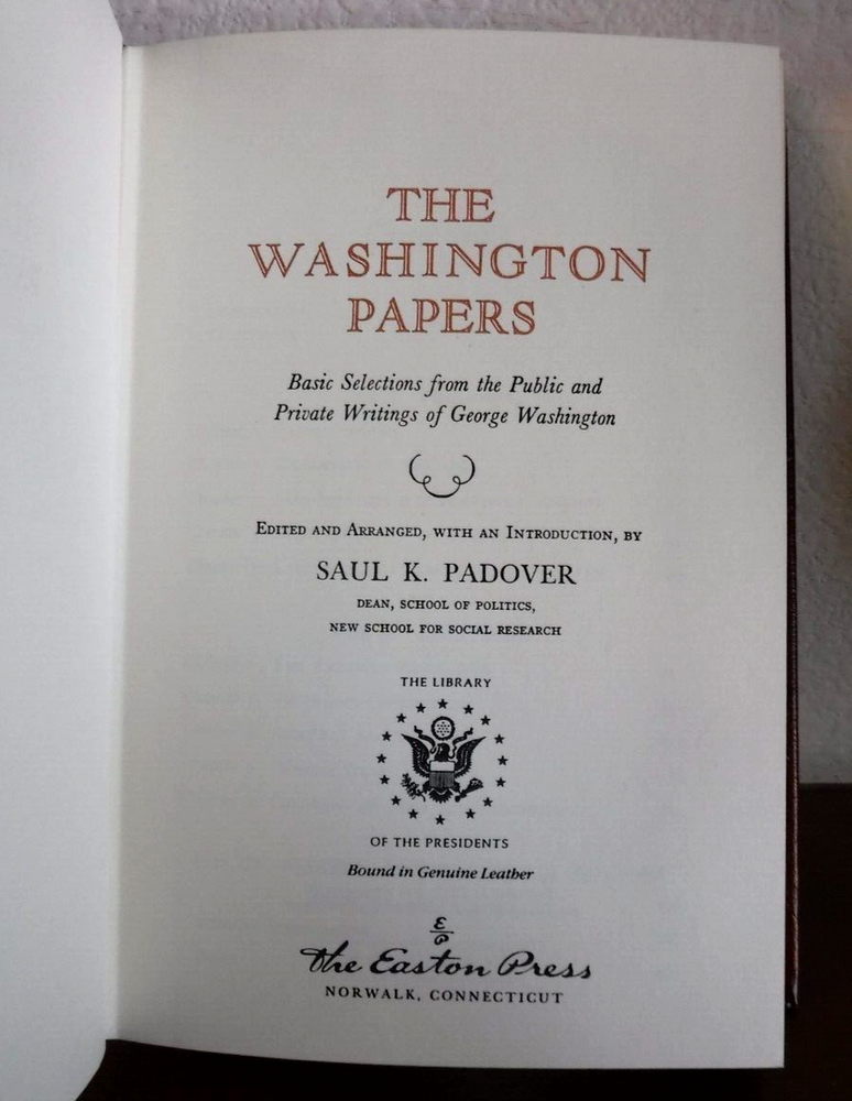 This vintage 1989 book, titled "The Washington Papers" and edited by Saul K. Padover, is a collector's edition worth adding to any book collection. The book is bound in leather and features an original printing by Easton Press, Inc. The author, Saul K. Padover, is a renowned biographer and this book is a must-read for anyone interested in the life of George Washington. or his writings. Learn about him in his own words. The book is written in English and was printed in the United States.