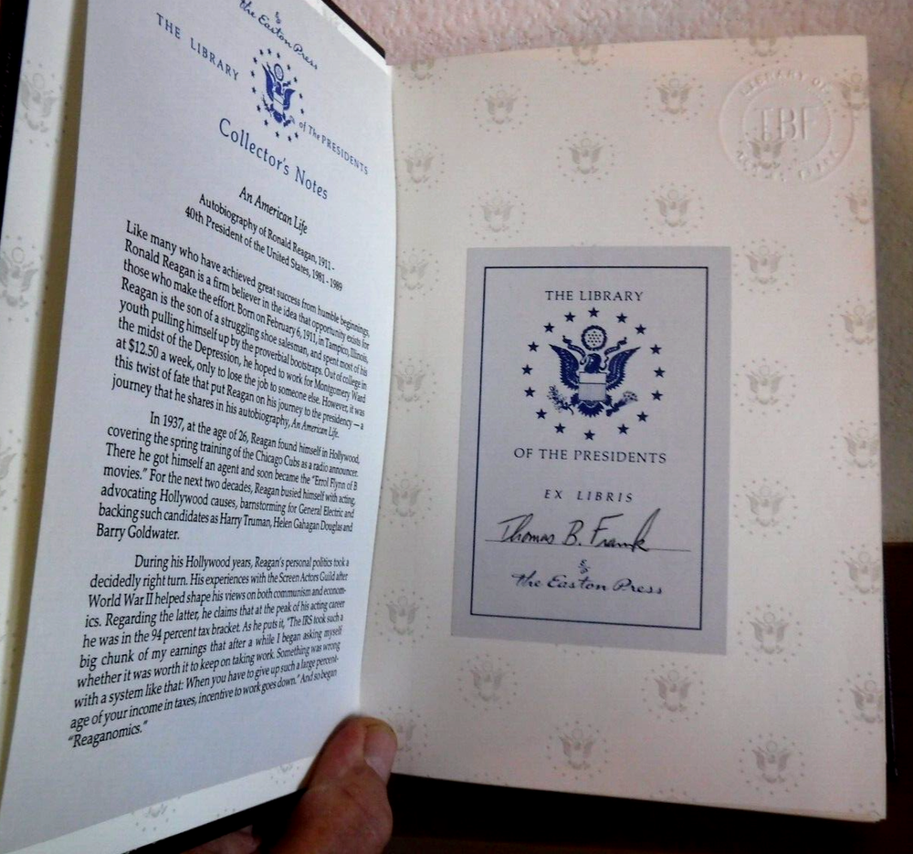 This Easton Press collector's edition book is a must-have for any biography enthusiast. Written by Ronald Reagan, the former President of the United States, the book titled "AN AMERICAN LIFE" provides a unique perspective on his life and career. The Collector's limited edition leather binding adds to its charm and makes it a valuable addition to any collection. The book is in its original form and has not been signed. The publisher, Easton Press, is known for its high-quality publications and this one is no exception. The topic of the book is a biography and it falls under the category of Antiquarian & Collectible and Books & Magazines. Add this gem to your collection today!