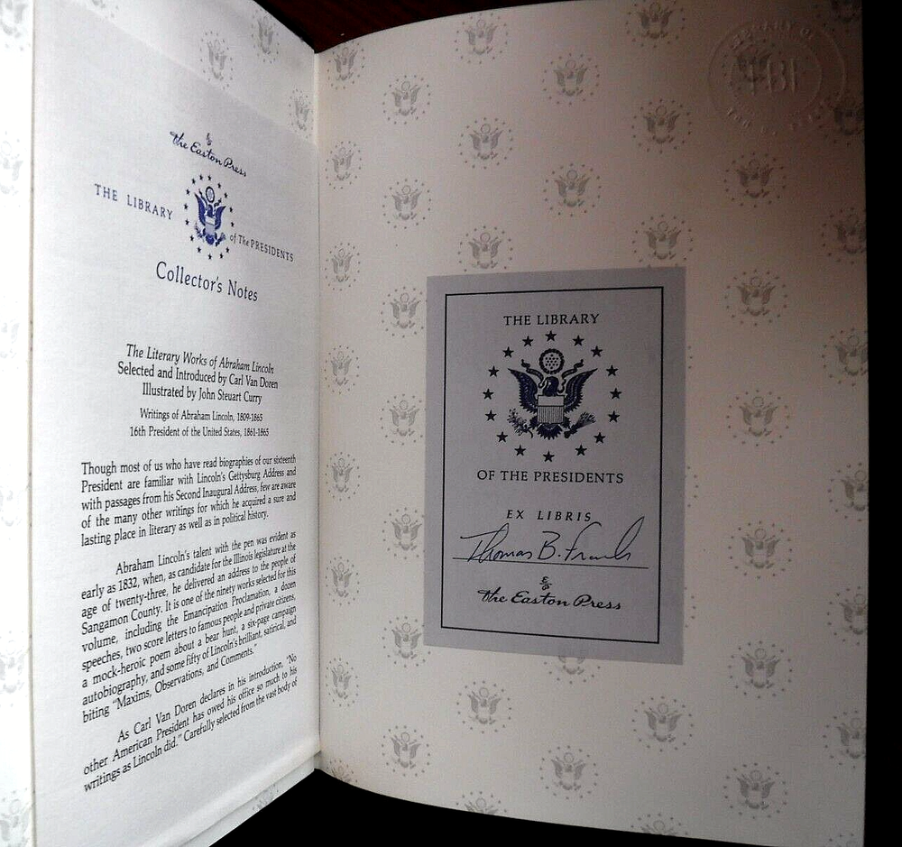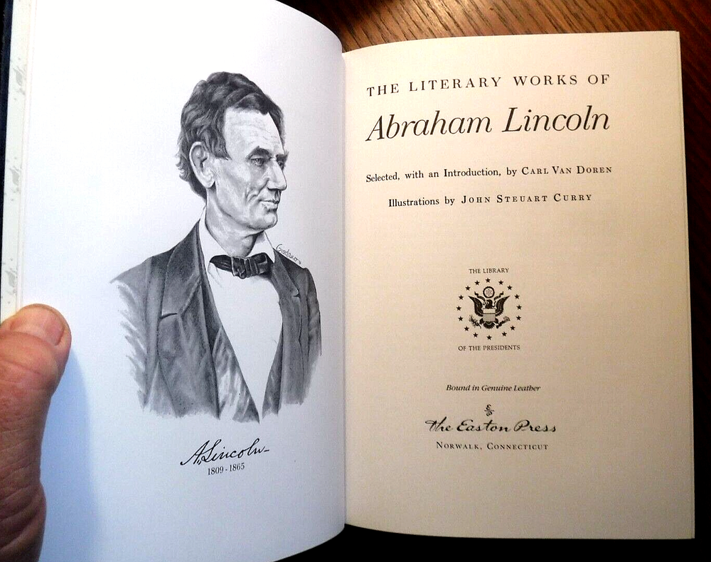 This vintage book published in 1992 by Easton Press is a collector's edition of THE LITERARY WORKS of ABRAHAM LINCOLN President's Library. The book is bound in deluxe leather and contains various works by the 16th President of the United States, including his famous speeches and writings on history, politics, and other subjects. The book is written in English and is perfect for anyone interested in history or looking to add a valuable piece to their collection.
