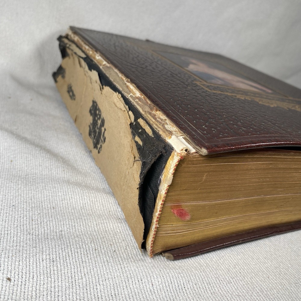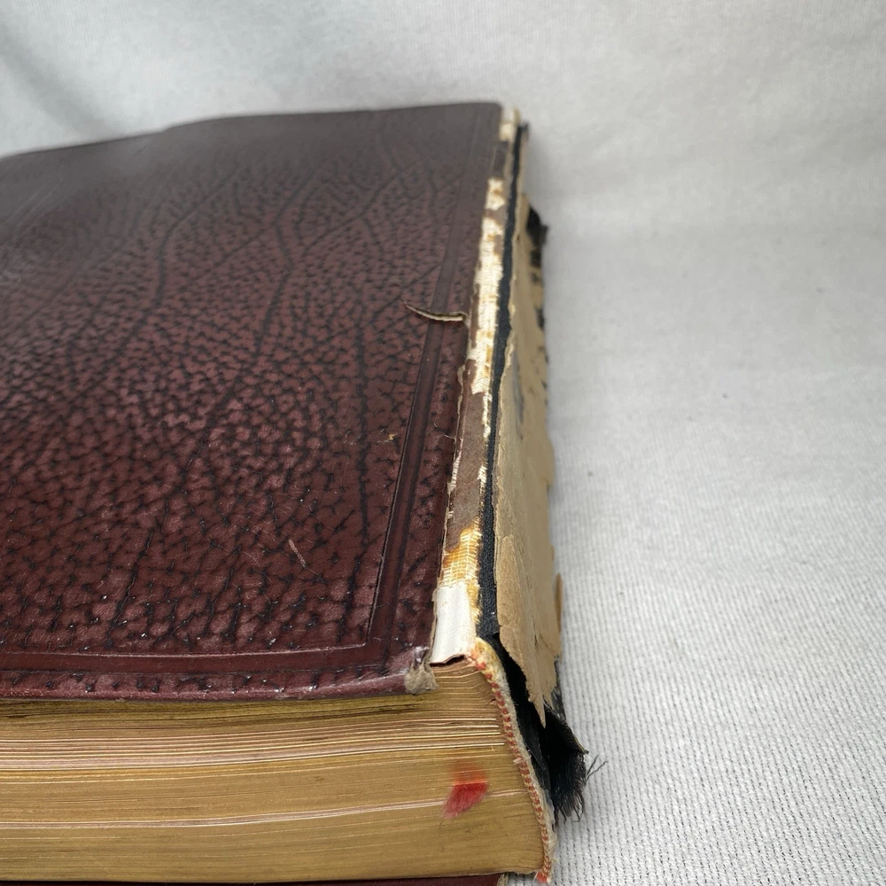 The spine of the book is in bad condition, front and back covers becoming detached. Some folding on corners of pages but overall the inside of the book is in good condition. Please review all photos before purchasing