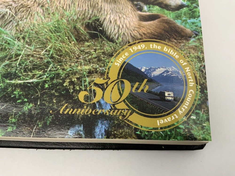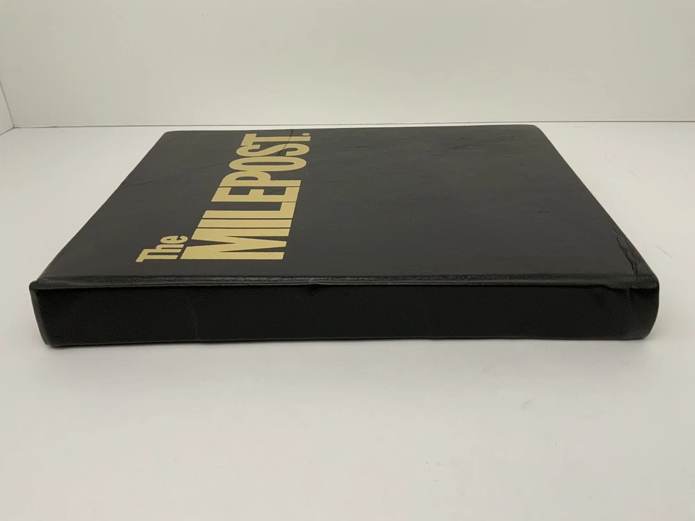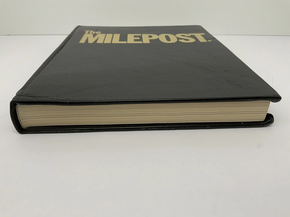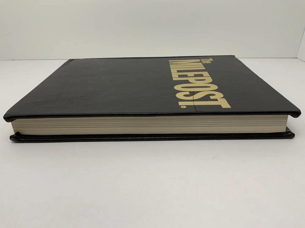 Vintage 50th Anniversary The Milepost Travel Guide. Alaska, Western Canada Reference Book. Black Leather Bound Collectors Edition. Measures approximately 11.25” tall and 8.75” wide. Very good condition. 768 pages.