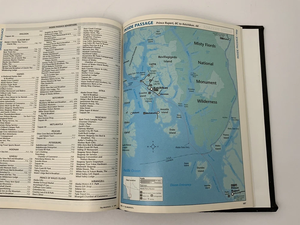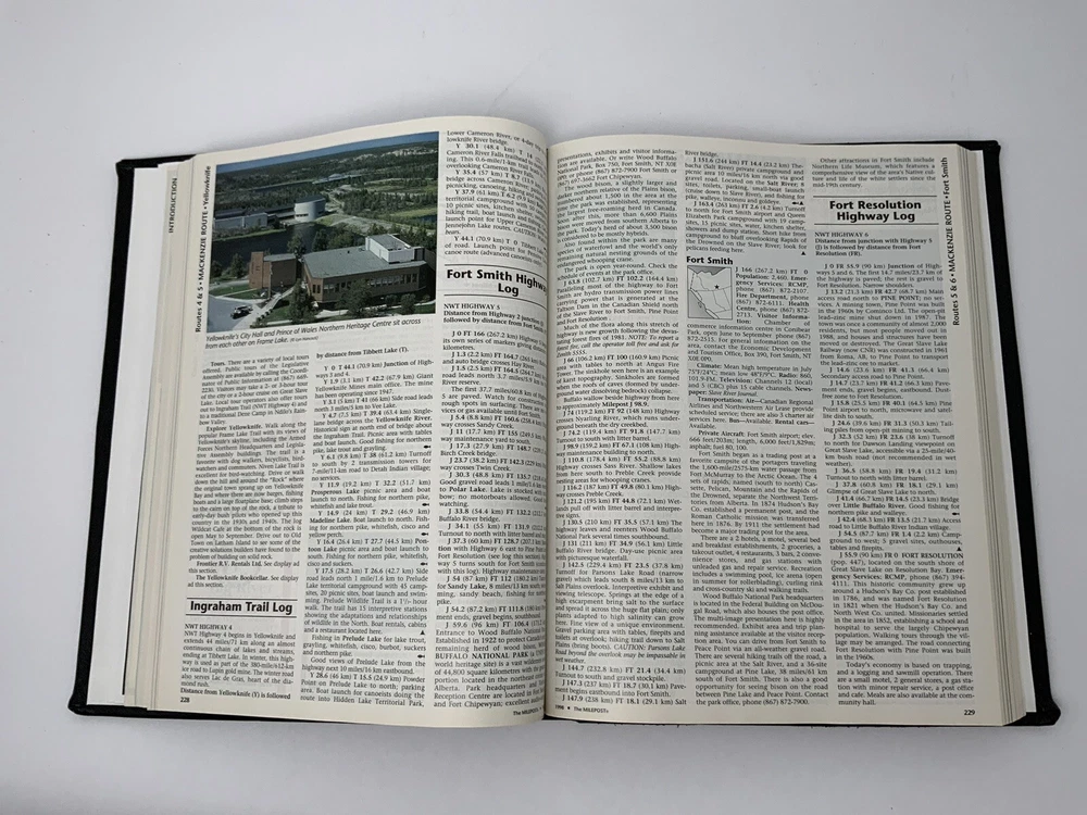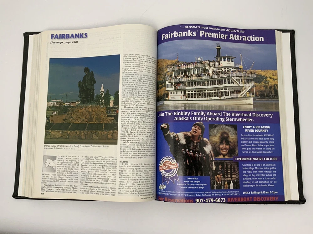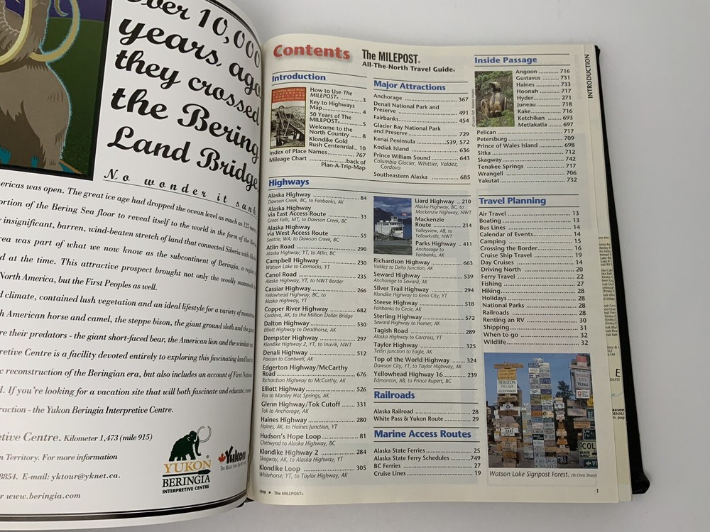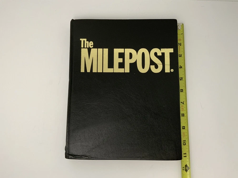 Vintage 50th Anniversary The Milepost Travel Guide. Alaska, Western Canada Reference Book. Black Leather Bound Collectors Edition. Measures approximately 11.25” tall and 8.75” wide. Very good condition. 768 pages.