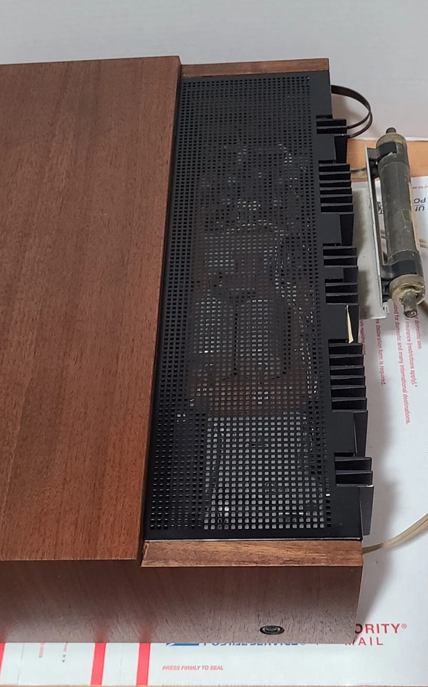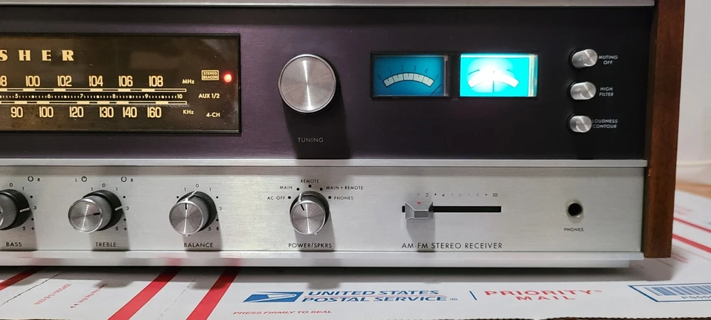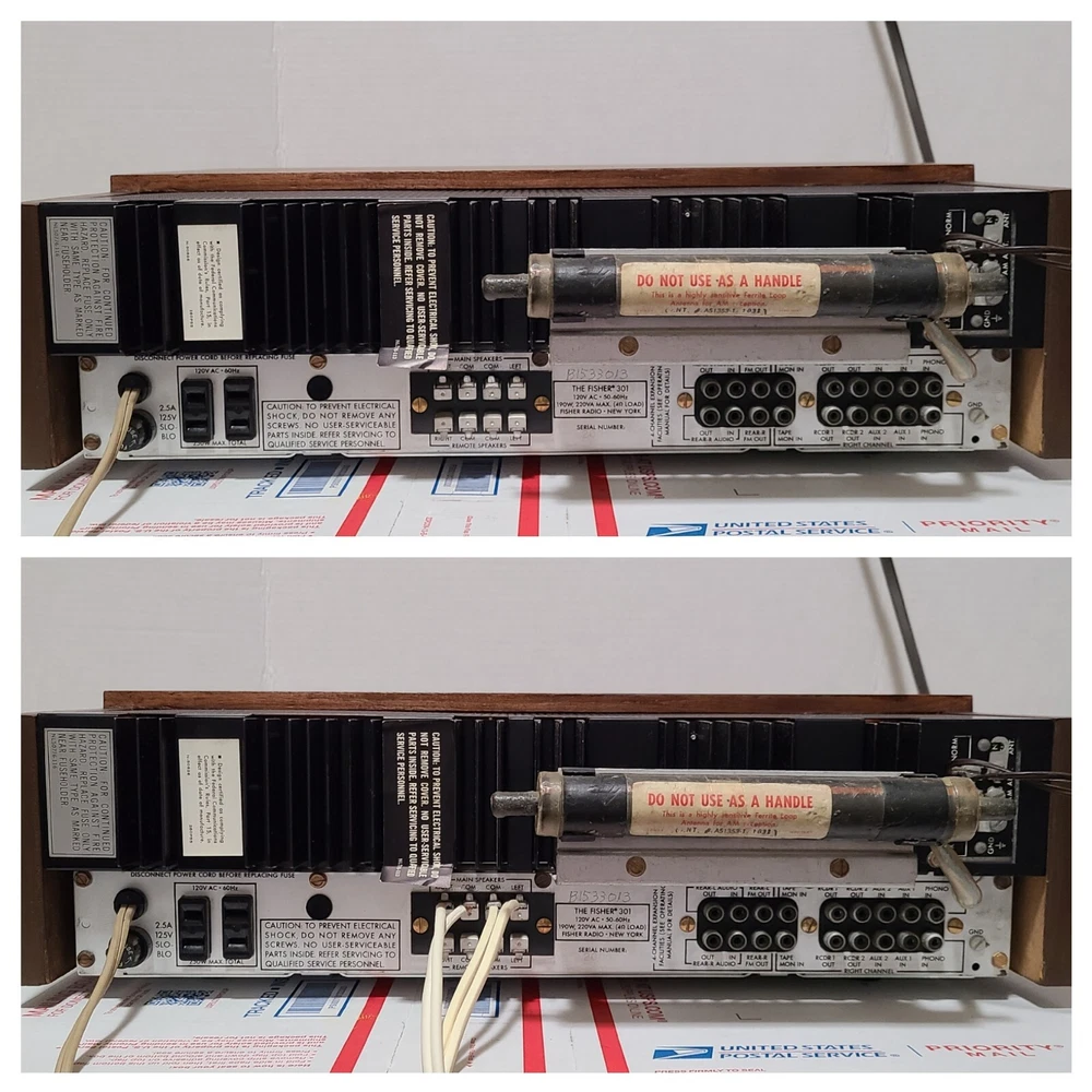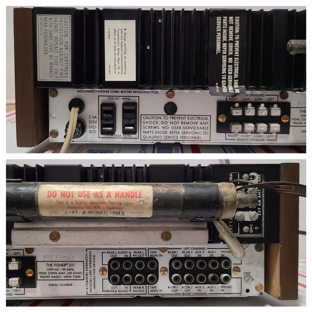 Vintage 70's Fisher 301 AM/FM Stereo Receiver with Real Wood Cabinet & Original User Manual. Also comes with the original FM wire antenna. Receiver is in excellent cosmetic condition. Real walnut cabinet is super clean. Face has no major noticeable blemishes. Please see photos for exact condition. Receiver works well. AM/FM was tested and pulls in a good signal in my area. Phono input works when I hooked it up to a more modern Rega Planar 1 turntable. The only thing is that the Bulb for the left signal meter is out but functionality wise the meter does work. Unit weighs around 28 lbs so with packing material and box, shipping package will weigh at least 31 lbs. I have a lot of experience packing heavy delicate audio equipment. Please see my feedback. Receiver will be packed with extreme care using bubble wrap and packing peanuts to ensure safe delivery.