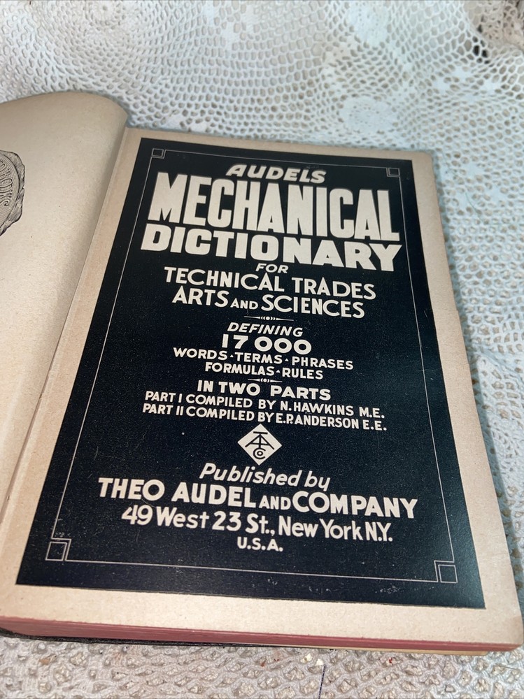 This vintage Audels Mechanical Dictionary from 1942 is a fascinating piece of history for any collector or enthusiast. While the front cover is loose and separated from the spine, the content inside remains intact and valuable. Perfect for those who appreciate old technical references—just be sure to check the photos for condition details! Selling as-is, but still a great find.
