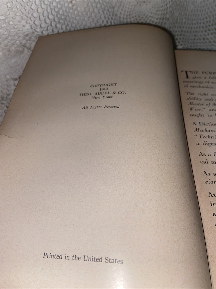 Vtg Audels Mechanical Dictionary 1942. The book is in fairly good condition. The front cover page is coming out and is also separated from the spine in the front please check the photos. I am selling as is.