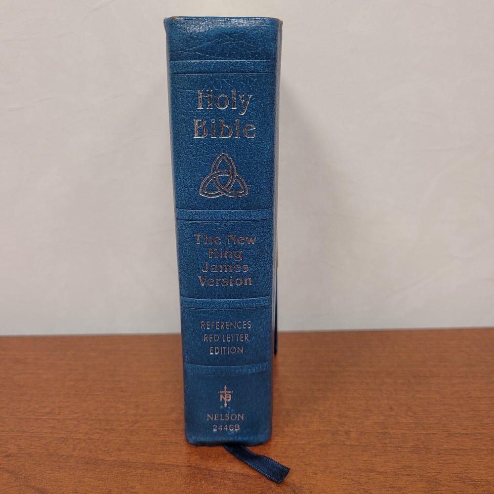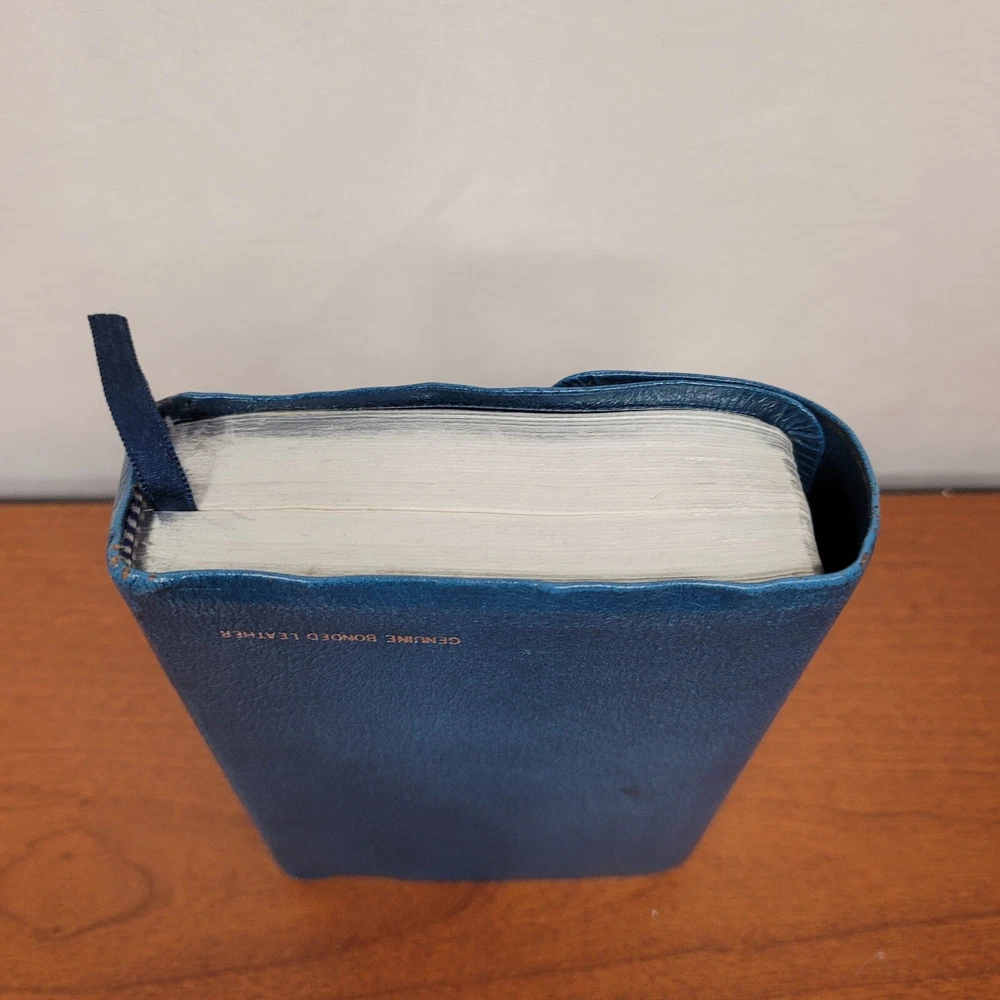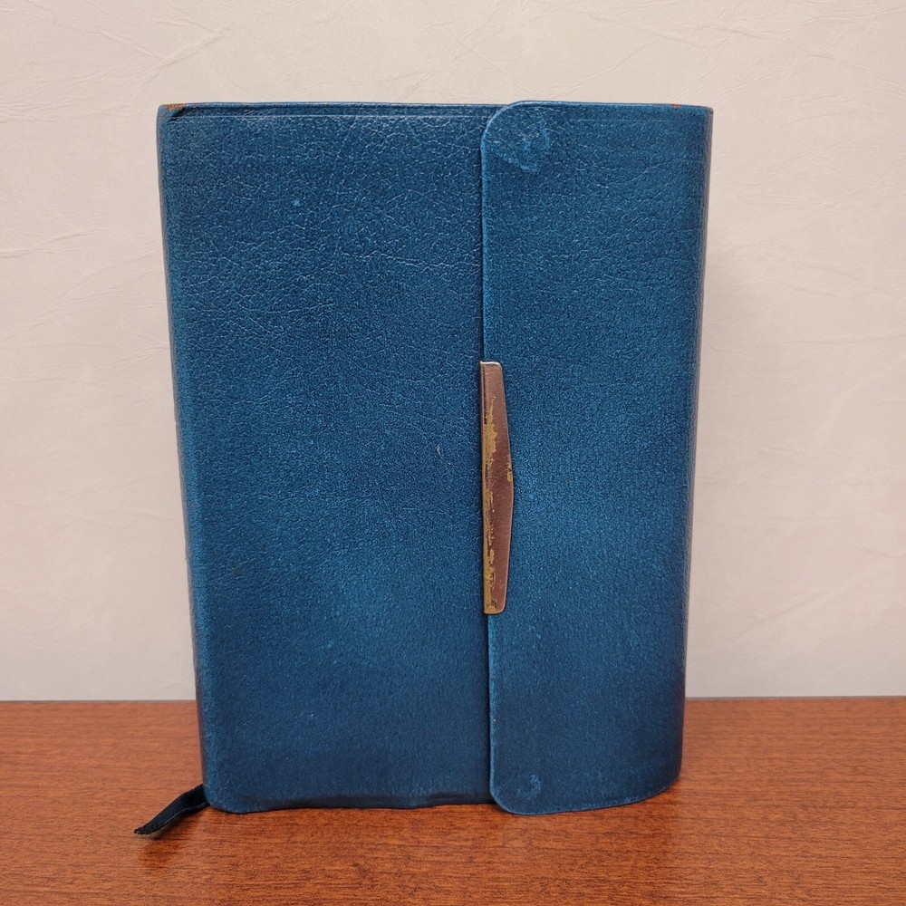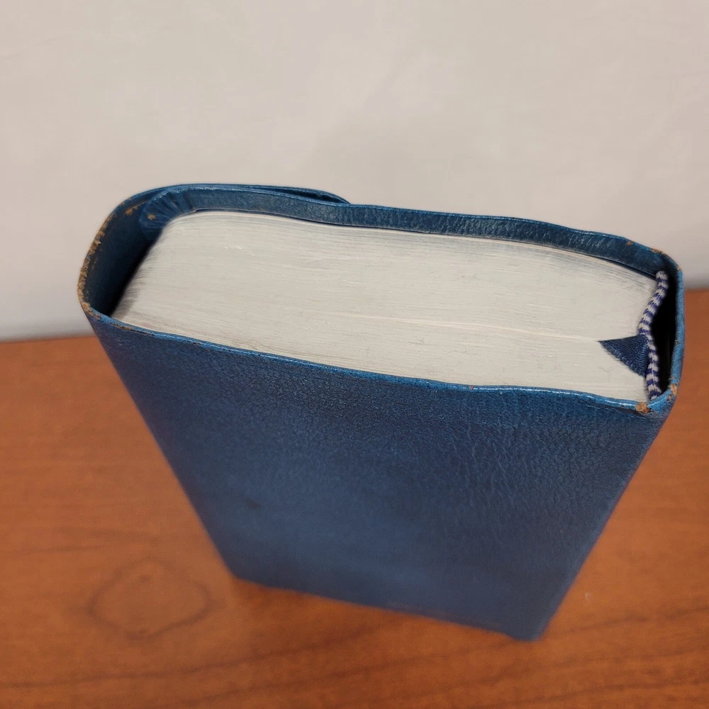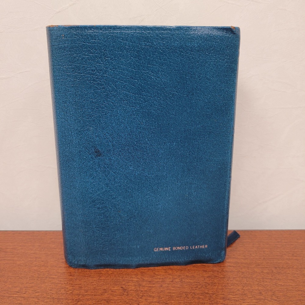 Vintage Holy Bible King James Version Red Letter Nelson 244SB Aqua Bonded Leather Snap Cover has some wear on the edges. There is writing on the presentation page. And some highlighting/underlining throughout. But nothing to detract from usability. Please see pictures