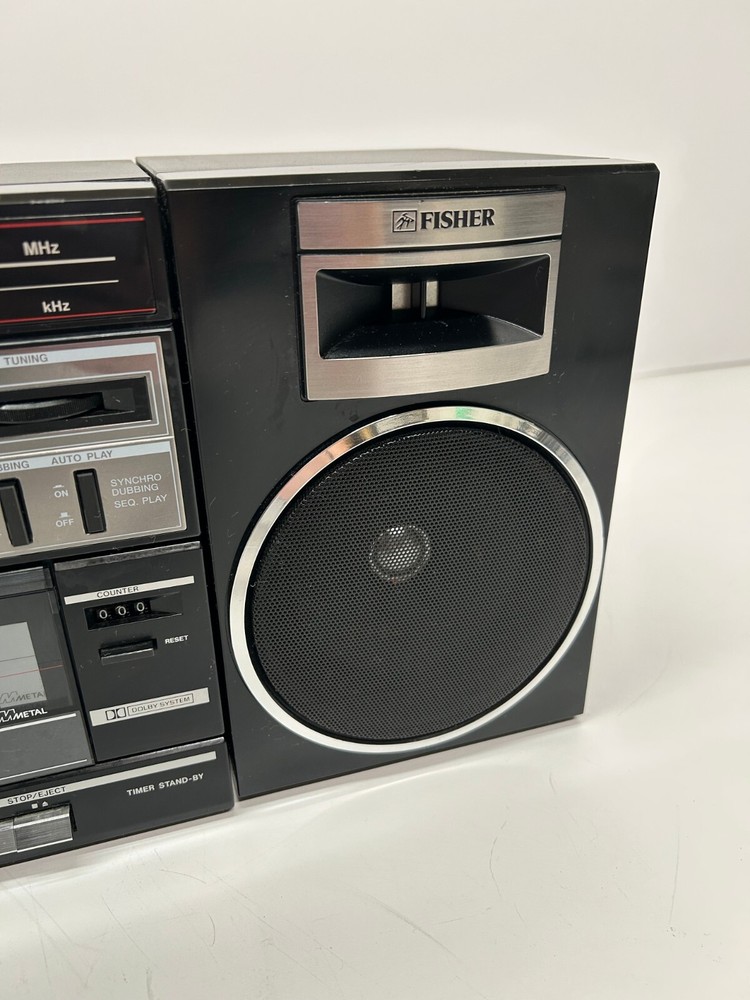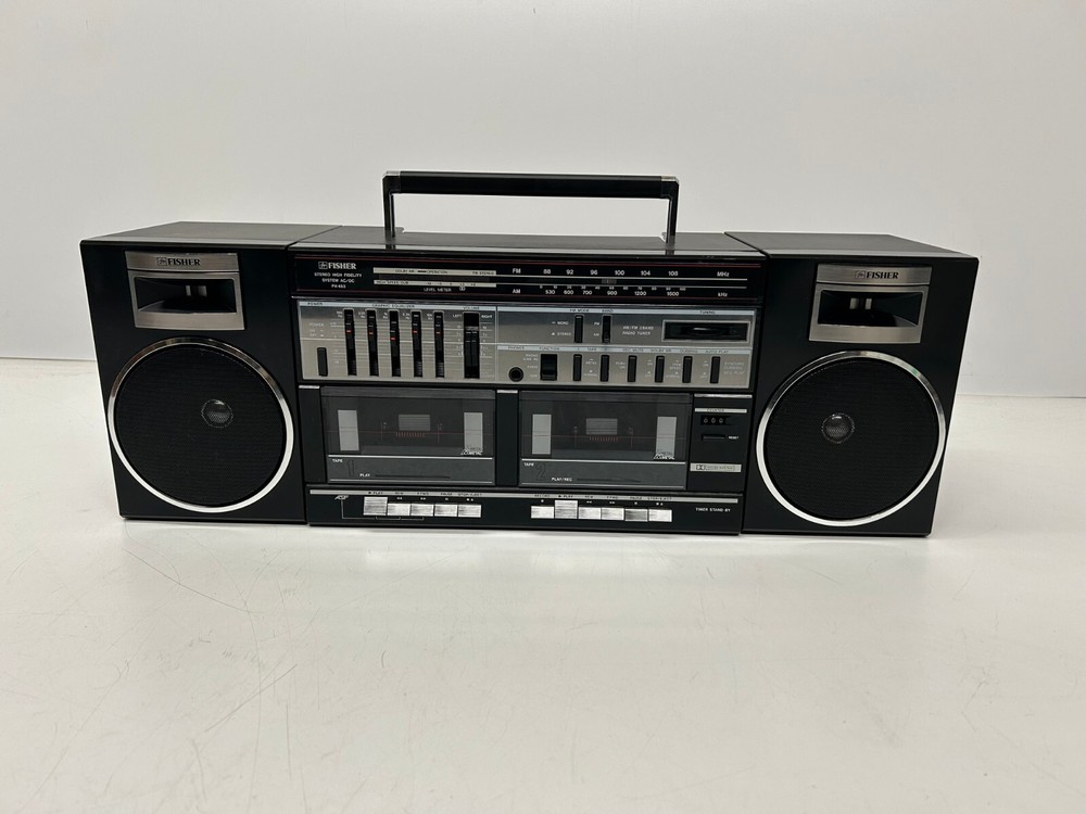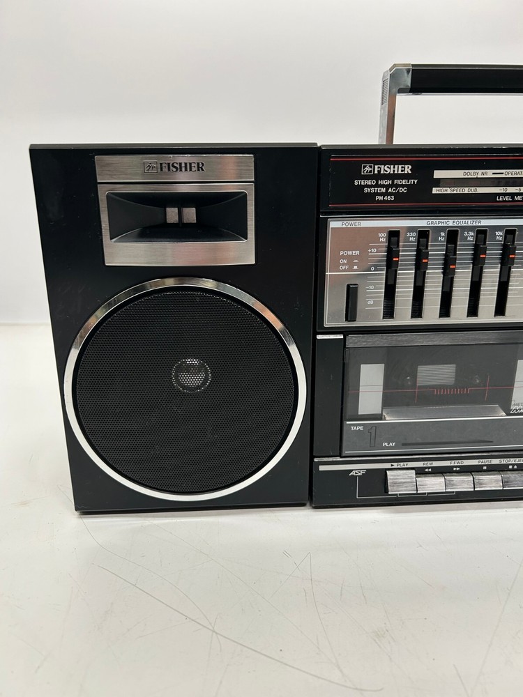 Welcome to our company, "The Bomb Shelter", one of the nation's largest stores of its kind selling vintage and antique items from all eras. eBay local pickup is available during business hours, please contact if you need this option! HERE WE HAVE: A vintage boombox! This is a Fisher model PH463. *5/16/25* CONDITION: Being sold as is, for parts or repair! The boombox was only tested with the power cord, but not batteries. It does play and the radio works fine. The tape player comes on, but the tape drags/eats tape so it needs some servicing! There are scuffs, scratches, stains, and color loss spots scattered throughout. Will come as shown, so please see photos! MEASUREMENTS: Whole piece measures approximately 24 3/4" wide, 7" front-to-back, and 8 1/2" tall excluding the handle and antenna. SHIPPING: Calculated. Please view shipping options, there may be a better (faster, more affordable, etc.) carrier available to your zip code than what is listed first. Thank you for looking and please Email through eBay with any questions! RETURNS: We hope you are completely satisfied with your purchase but if you choose to make a return for reasons not pertaining to a defective or damaged item then the buyer shall be responsible for shipping charges both ways - only the initial purchase price will be refunded. When items are returned that had shipping included in the eBay purchase price “FREE SHIPPING”, the actual shipping will not be refunded when item is returned due to the fact that no shipping is really free. In the case of a damaged item we will expect the buyer to contact us and to assist in filing an insurance claim in order to be compensated for the loss. The "not as described" return option is not to be used to resolve damaged item cases. As stated above, the pictures provided are the description - the buyer is responsible for being aware of what they are purchasing - as long as the item delivered matches the photographs in the listing we will consider the item to match the description.