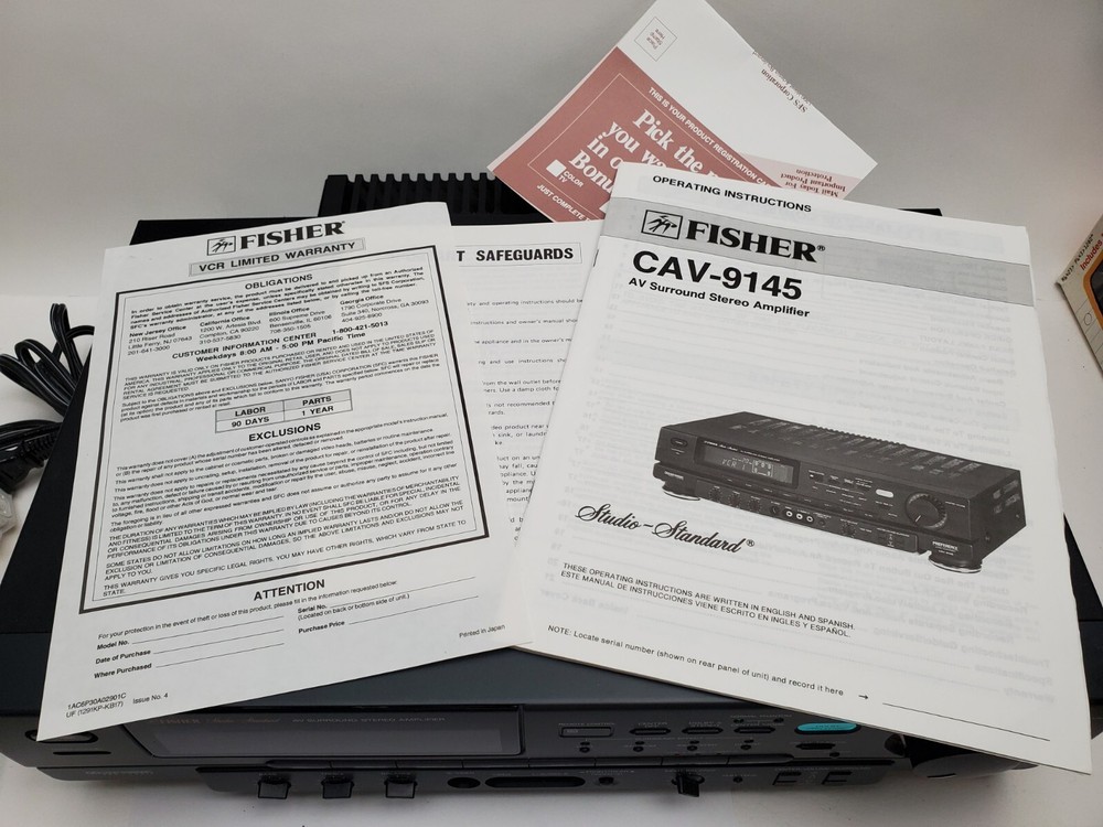 For your consideration we have a Vintage Rare Hard to find Fisher Studio Standard AV Surround Stereo Amplifier CAV-9145 in great working and physical condition. No remote but has paperwork and instructions. Very well taken care of. Please ask questions. Please see pictures for more details and I am happy to answer any questions. What you see is what you will receive. We are listing others like this. Please check out our other listings We are resellers not collectors of the items we sell. We do not claim to be experts, we try to research our items to the best of our ability, but may not always know exactly what details collectors/buyers are looking for. We ask that you ask questions prior to bidding or purchasing. If there is something specific you need to know we are happy to help I take great care in packaging and shipping so your item arrives to you safely. I ship often so you should receive your item 3-10 days after I receive payment. I buy and resell items AS IS and that is how they come to you AS IS.