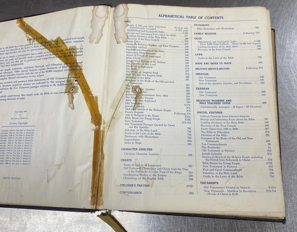 Vtg Hertel Holy Bible New Standard Reference Edition Blue Ribbon Leather 1965-66. The first few pages have damage, the rest of the pages appear to be in good condition. Please see pictures.thanks for looking Store H1
