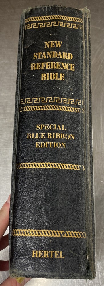 Vtg Hertel Holy Bible New Standard Reference Edition Blue Ribbon Leather 1965-66. The first few pages have damage, the rest of the pages appear to be in good condition. Please see pictures.thanks for ...