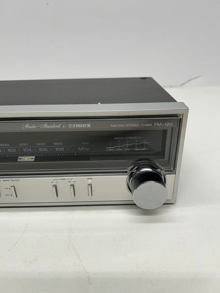 Welcome to our company, "The Bomb Shelter", one of the nation's largest stores of its kind selling vintage and antique items from all eras. eBay local pickup is available during business hours, please contact if you need this option! HERE WE HAVE: A vintage Studio-Standard by Fisher model FM-120 AM/FM stereo tuner! *10/11/24* CONDITION: Acceptable, used condition! Was tested and working well, although we don't extensively test items. It is a vintage electronic, so it could need some servicing to be like-new. There are some scuffs and scratches to the exterior. Will come as shown, so please see photos! SHIPPING: Calculated. Thank you for looking and please Email through eBay with any questions! RETURNS: We hope you are completely satisfied with your purchase but if you choose to make a return for reasons not pertaining to a defective or damaged item then the buyer shall be responsible for shipping charges both ways - only the initial purchase price will be refunded. When items are returned that had shipping included in the eBay purchase price “FREE SHIPPING”, the actual shipping will not be refunded when item is returned due to the fact that no shipping is really free. In the case of a damaged item we will expect the buyer to contact us and to assist in filing an insurance claim in order to be compensated for the loss. The "not as described" return option is not to be used to resolve damaged item cases. As stated above, the pictures provided are the description - the buyer is responsible for being aware of what they are purchasing - as long as the item delivered matches the photographs in the listing we will consider the item to match the description.