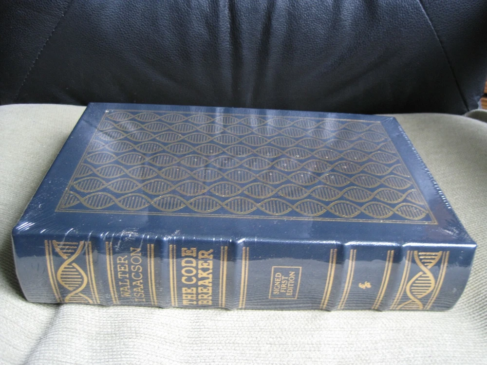 This is a leather bound signed and numbered first edition of Walter Isaacson's massive 2021 best-seller - "The Code Breaker - Jennifer Doudna, Gene Editing, and the Future of the Human Race", the fascinating story of CRISPR system of gene edition discovery, that earned Jennifer Doudna and Emmanuelle Charpentier the 2020 Nobel Prize in Chemistry. The book is in great condition, brand new and still sealed in the original plastic wrap. Signed by the author on the limitation page, the book also includes the signed and dated certificate of authenticity and the publisher's note card sealed inside the book. This is one of only 400 numbered copies ever printed by Easton Press. Easton Press books are the golden standard in the publishing industry, highly collectible and lasting generations. Easton Press Full Genuine Leather Dubbed Spine Accented Wit 22 kt. Real Gold Satin Ribbon Page Marker Distinctive Cover Design Gilded Page Edges To Protect Against Humidity High Quality Acid - Free paper Smyth-Sewn Pages Silk-Moire Endleaves I combine multiple items for savings on shipping charges. I ship worldwide. Please ask about international shipping charges and/or different shipping options. Please check out my other auctions for several rare signed books for sale. Thank you!