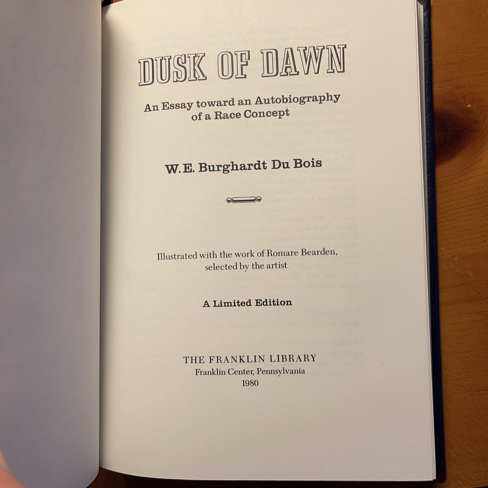 W.E.B. DU BOIS: DUSK OF DAWN essays ROMARE BEARDEN illustrated, Leather,. Shipped with USPS Media Mail.