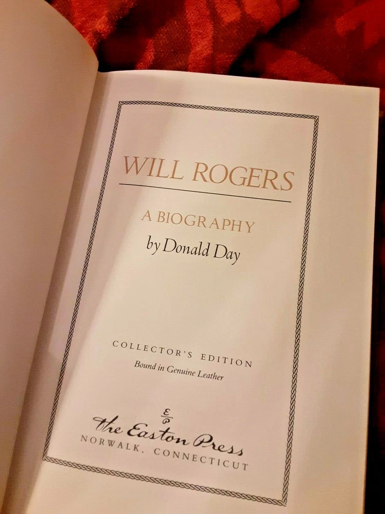 Easton PRESS LEATHERBOUND WILL ROGERS A BIOGRAPHY by Donald Day. the 1990 edition from Easton's Leatherbound Library of American History. The fine quality you expect from Easton Press, with hubbed spine, acid free paper, sewn in bookmark. Includes Notes, no bookplate. Shipped with USPS Media Mail, carefully packaged. Thanks for looking! lb3