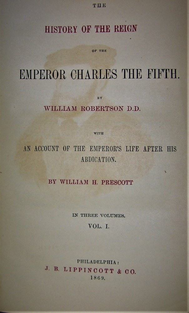 Willi am Hickling Prescott (May 4, 1796 – January 28, 1859) was an American historian who is widely recognized to have been the first American scientific historian. Despite suffering from serious visual impairment, which at times prevented him from reading or writing for himself, Prescott became one of the most eminent historians of 19th century America. He is also noted for his eidetic memory . A direct descendant of the revolutionary American officer William Prescott, William H. Prescott spent his childhood and adolescence in Boston, Massachusetts. Prescott attended Harvard University, and considered a legal career, but his poor health prevented him from working professionally and he therefore dedicated himself to a life of writing. After an extensive period of study, during which he sporadically contributed to academic journals, Prescott specialized in late Renaissance Spain and the early Spanish Empire. His works on the subject, The History of the Reign of Ferdinand and Isabella the Catholic (1837), The History of the Conquest of Mexico (1843), A History of the Conquest of Peru (1847) and the unfinished History of the Reign of Phillip II (1856–1858) have become classic works in the field. The Conquest of Mexico is a magnificent epic," said William H. Prescott after the publication of History of the Conquest of Mexico in 1843. Since then, his sweeping account of Cortés's subjugation of the Aztec people has endured as a landmark work of scholarship and dramatic storytelling. This pioneering study presents a compelling view of the clash of civilizations that reverberates in Latin America to this day. The year is 1520. Cortes embarks from Cuba with the aim of claiming Mexico for Spain. Arriving in the capital, he is made welcome by the divine ruler, Montezuma, and the two men become friends. Montezuma comes to believe that Cortes is, in fact, the ancient Aztec god, Quetzalcoatl. Cortes' attempts to convert Montezuma to Christianity fail. He takes his counterpart prisoner, but within chivalrous limits. The arrival of a new body of Spaniards, seeking to overthrow Cortes, whom they see as a vainglorious rebel, screws up the tension. Eventually, Montezuma dies and a fierce, bloody battle ensues. Ferdinand and Isabella is Prescott's complete epic history of his favorite person in the world, Queen Isabella and her husband Ferdinand. From her youth and her lifelong relationship with Gonsalo De Cordoba ( the Great Captain) , great details of court life and of all of the battles she participated in, creating field hospitals and cafeterias on the battlefield. Included is the complete story of her relationship with Christopher Columbus and her total loyalty toward him. This is masterly writing of history, comparable to his histories of the conquests of the Aztecs and of the Incas. With her intelligence and firm dedication to her subjects, Isabella is the finest figure in this period of history, possibly the best epoch ever, and despite the great stain of the Inquisition, she is probably the most loved monarch by her people in all of history. Charles V , (born February 24, 1500, Ghent, Flanders [now in Belgium]—died September 21, 1558, San Jerónimo de Yuste, Spain), Holy Roman Emperor (1519–56), king of Spain (as Charles I; 1516–56), and archduke of Austria (as Charles I; 1519–21), who inherited a Spanish and Hapsburg empire extending across Europe from Spain and the Netherlands to Austria and the Kingdom of Naples and reaching overseas to Spanish America. He struggled to hold his empire together against the growing forces of Protestantism, increasing Ottoman and French pressure, and even hostility from the pope. At last he yielded, abdicating his claims to the Netherlands and Spain in favor of his son Phillip II and the title of emperor to his brother Ferdinand I and retiring to a monastery. All of his victories in battle against the French as well as his political ambitions are chronicled. Charles is considered one of the most powerful rulers in the history of Europe.