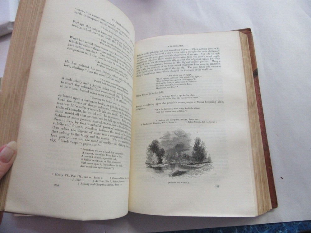 Book 1) William Shakspere A Biography by Charles Knight 1843 Leather bound book, Gold Leaf Pages, Flowers pressed in book in 1886 , See pictures for book you will be receiving. Very Old 544 pages Book 2) THE PICTORIAL EDITION OF THE WORKS OF SHAKSPERE Edited by Charles Knight. BK1043