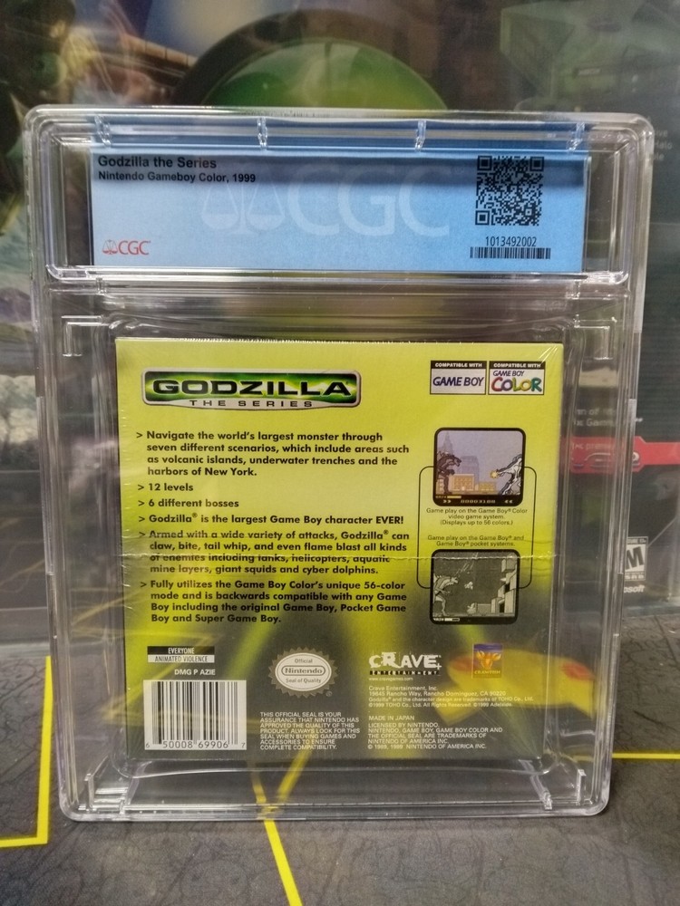 | _desc_ | If you've ever harbored fantasies of stomping through city streets and destroying stuff with your flame breath and tail whip attacks, now you can live them out in Crave's Godzilla: The Series for your Nintendo Game Boy or Game Boy Color.<br><br>While in the past the "King of Monsters" was a bad guy, this time he's on our side. While based on the animated kids' show, the game's storyline is a variation on the 1998 film starring Matthew Broderick. Godzilla hatched from an egg deep in the Manhattan sewers and bonded as a little lizard with Dr. Nick Tatopoulos. Tatopoulos is the leader of the H.E.A.T. team, a group of scientists dedicated to exploring strange occurrences around the world.<br><br>A string of attacks by alien mutant creatures has prompted the team to call upon Godzilla, whose job is to clear a path for them so they can do their investigating. The game features 12 levels stretching across diverse locales such as volcanic islands, underwater trenches, and the harbors of New York City. Six different bosses who use giant squids, cyber dolphins, tanks, helicopters, and aquatic mines must be defeated.<br><br>Godzilla has a health meter which runs down as he takes damage. If it hits zero, he won't be able to walk anymore and the game will be over. There's also a meter for his fire power, which runs down every time he uses his flaming breath. Both meters replenish themselves as you play.<br><br>The giant lizard also has plenty of other attacks on his side, such as tail whips, foot stomps, claw swipes, and bites. As he destroys enemies he earns experience points. When he earns enough he can get new abilities or upgrade existing ones. He starts the game with only fire breath, tail swipe and block as his abilities and he must earn the others.<br><br>After you complete each level you'll get a password so that you can return to the same place the next time you play. This game is also compatible with the Super Game Boy. |