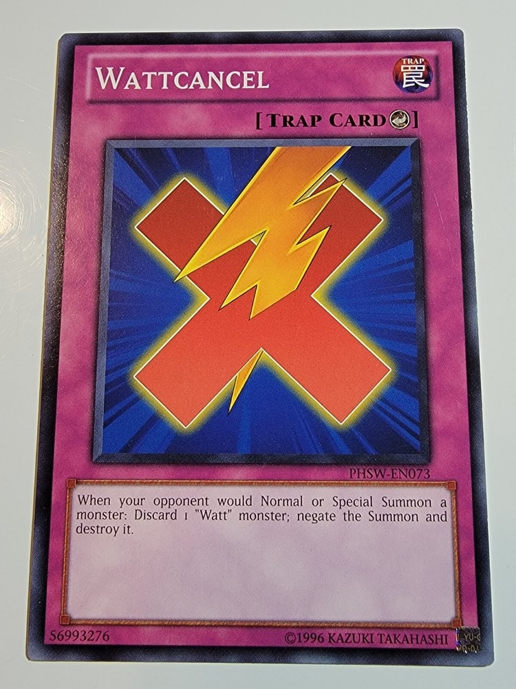 Wattcancel PHSW-EN073 Common Unlimited Yugioh. Overall lightly played condition. (Please reference pictures for c osmetic condition). Take advantage of our multi item discount!!! When you buy 2 items you will have the opportunity to select a 3rd item of equal our lesser value for free from our whole inventory. (Must use Ebay's shopping cart feature in order to take advantage of this discount). If you have any inquiries please feel free to message us and we will respond as soon possible, usually within 24 hours. SHIPPING We almost always use USPS as our primary SHIPPING service. We ship within 24 hours of receipt of payment and will always provide tracking, unless otherwise stated in the listing. (We reserve the right to use a different carrier or service). FEEDBACK Your FEEDBACK is important to us as a growing small business. If for any reason you are unhappy with your transaction, please message us and we will do everything in our power to make it right. Returns Returns are accepted within 30 days of confirmation of delivery. If there is anything you are unhappy about with your purchase please message us and we will respond within 24 hours to your concerns. Thank you for supporting our small business. We appreciate your valued business with us and look forward to serving you in the future. Dan & Tonya Dio's Eclectic Treasures