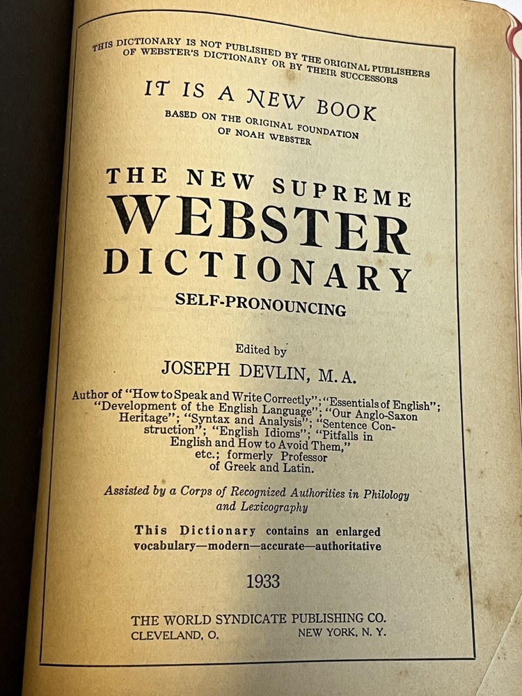 Webster Dictionary 1933 The New Supreme Self Pronouncing