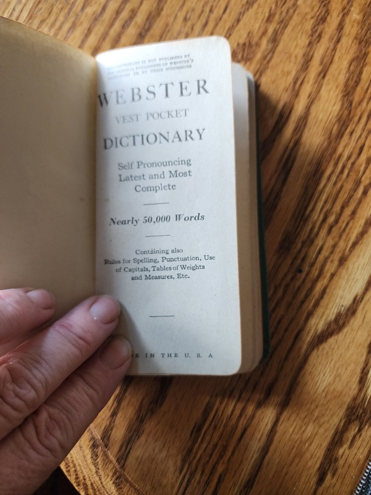 Vintage Webster Vest Pocket Dictionary, not sure the age. Check out the photos and my other vintage items. Payment within 3 days of winning. Thanks for looking.