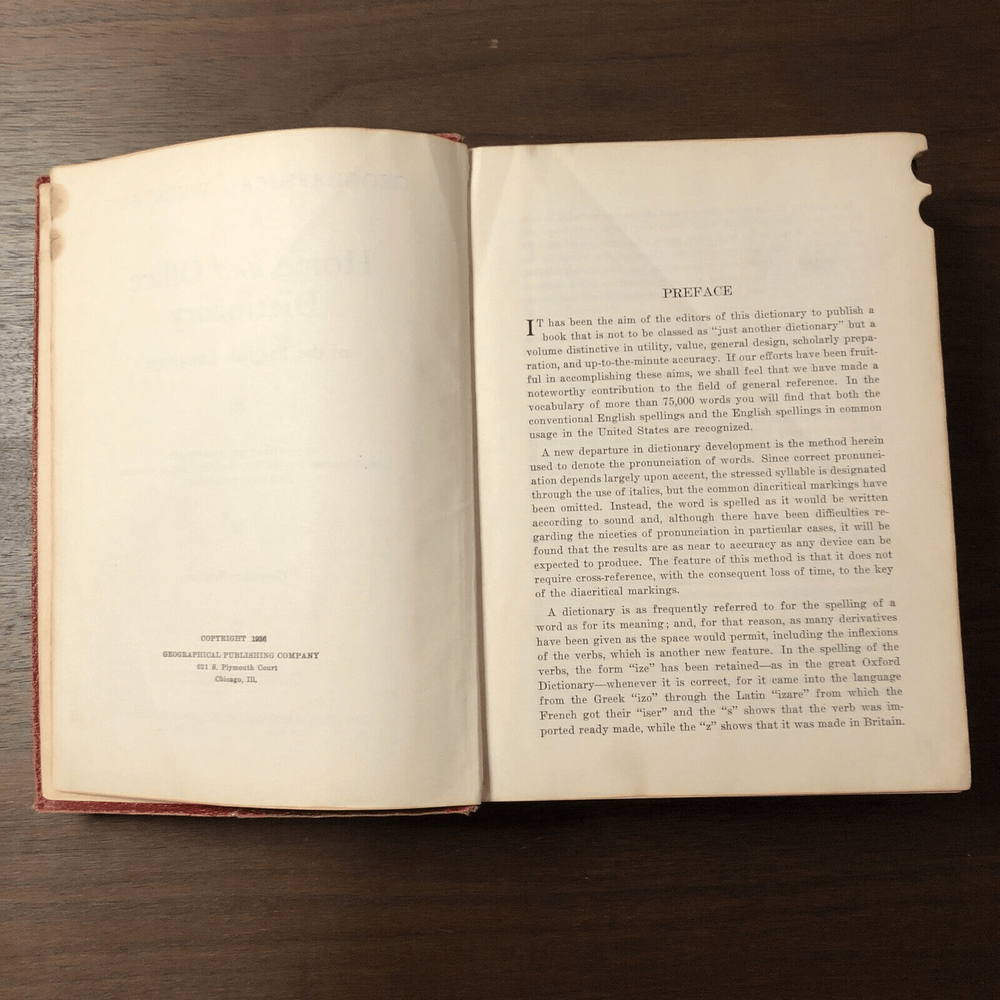 This vintage Webster's Geographical Home & Office Dictionary Revised Edition from 1936 is a valuable addition to any collection. The leather binding and original printing make it a rare find for collectors of antique books. The dictionary includes extensive reference material on North American geography, making it a useful tool for anyone interested in the subject. The illustrator and author are unknown, adding to the intrigue of this piece. This book is a must-have for anyone interested in collecting dictionaries and thesauri, and it is a great conversation starter.