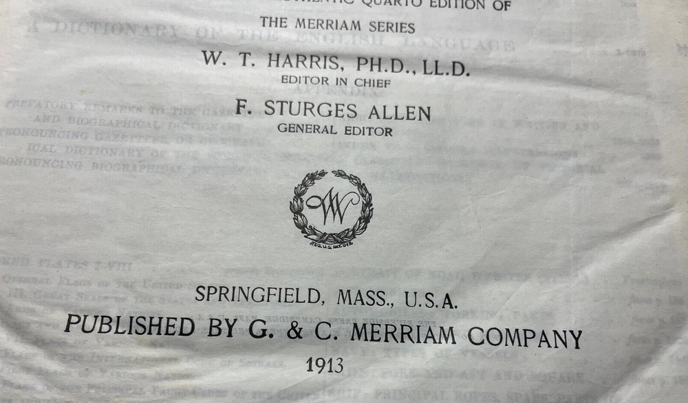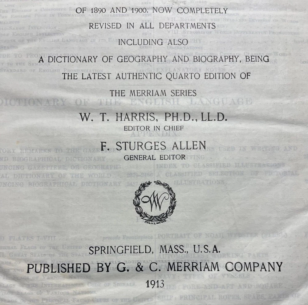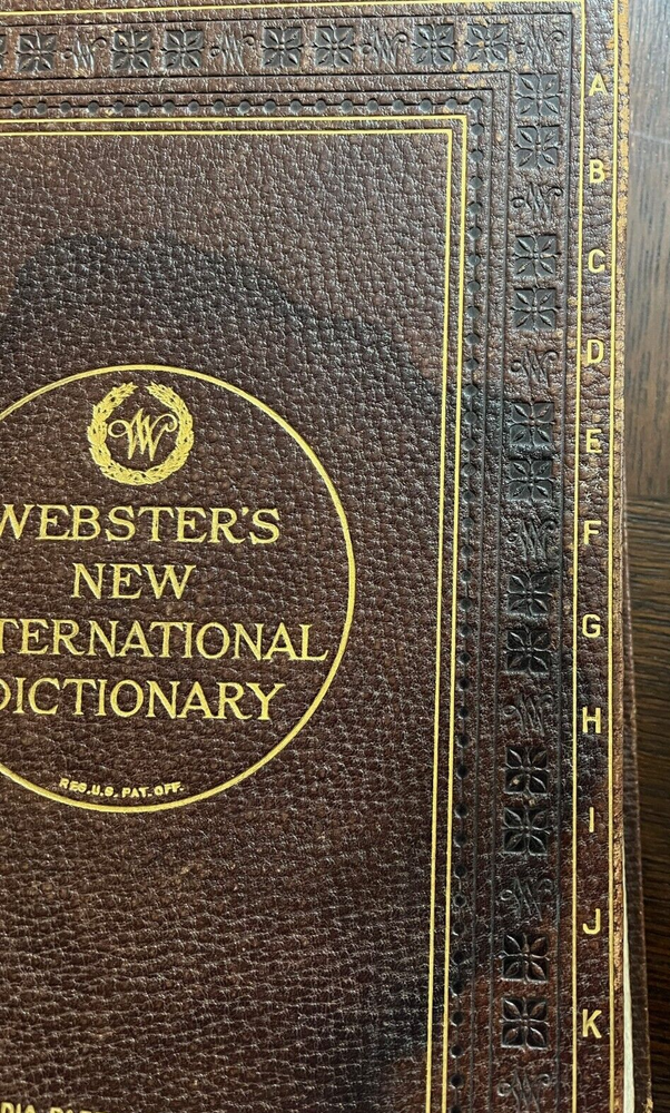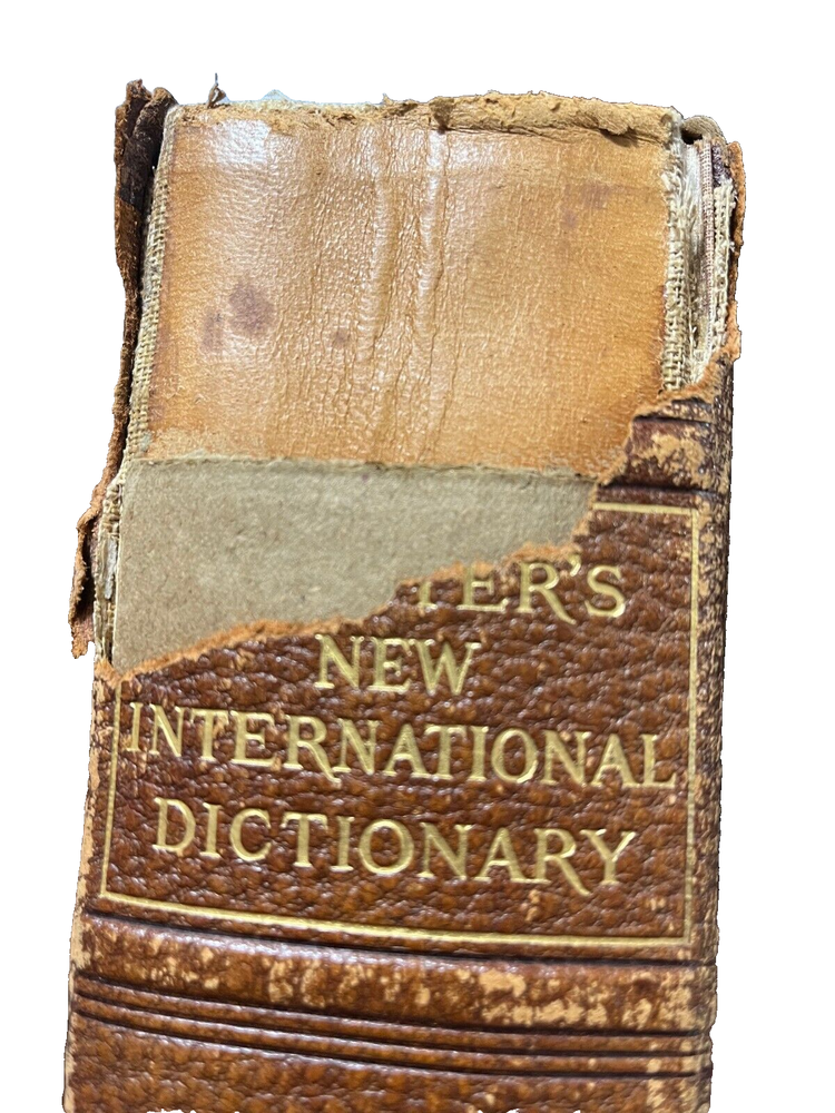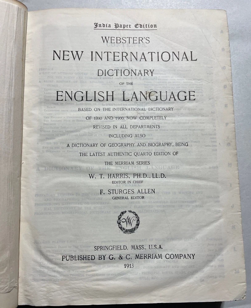 A rare, Vintage, Webster's New International Dictionary of the English Language, India Paper Edition. Based on the International Dictionary of 1890 and 1900. Published by G. & C. Merriam Company in 1913. Extra Large, full leather binding with indexed page tabs on the inside edge. There is some damage to the outside cover as shown in the pictures, along with some water marks...but overall, given the age of the book, it's in good condition. This dictionary has beautiful color images of the Flags of the United States, Seals & Territories, Arms of Various Nations, Flags of other Nations, and a lot of Pictorial images of various things in the back. Approx 12.25" tall x 9.50" wide x 2.75" thick Please feel free to contact me for any questions or more photos. I will make every attempt possible to resolve any issues. Items usually ship same or next business day, USPS, with exceptions of holidays or weekends Payment is due in 1-2 days No returns, so please read description Fast Shipping Pre-owned, overall good condition given age of the item