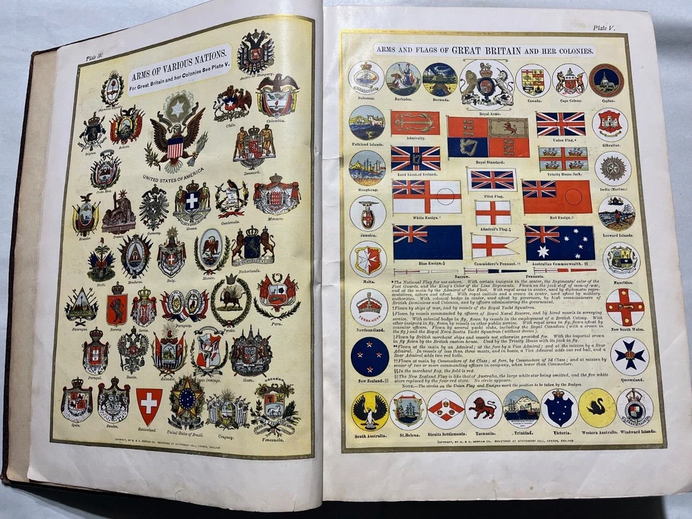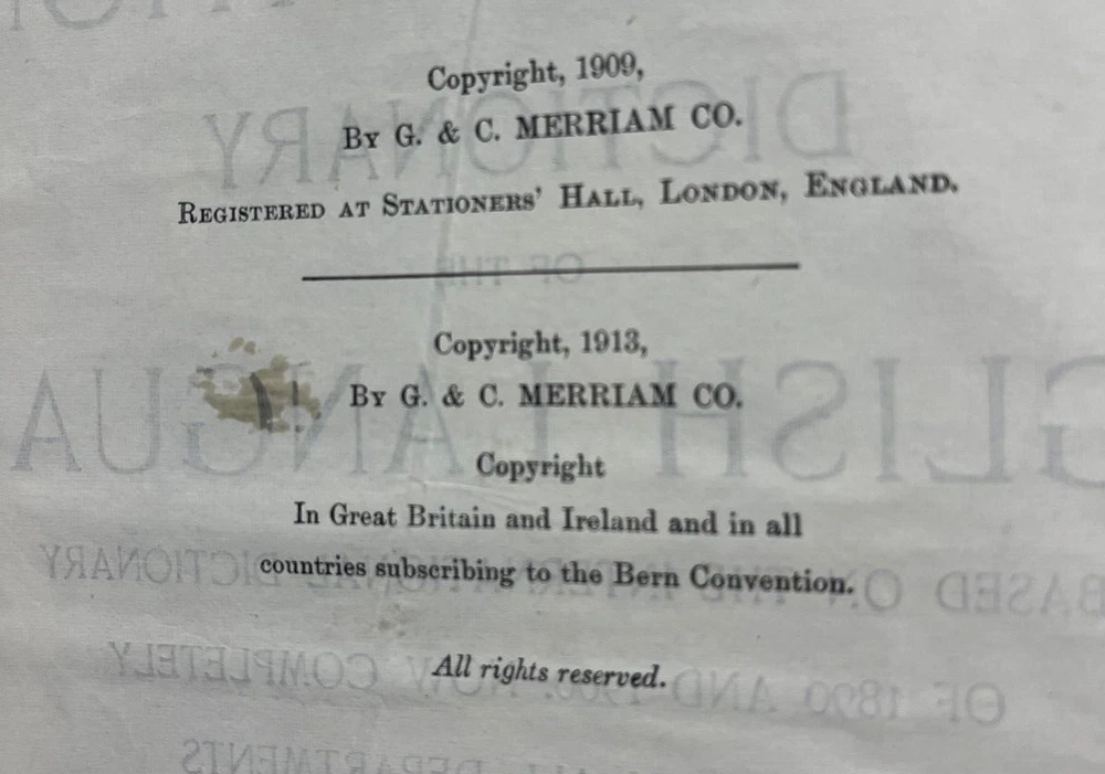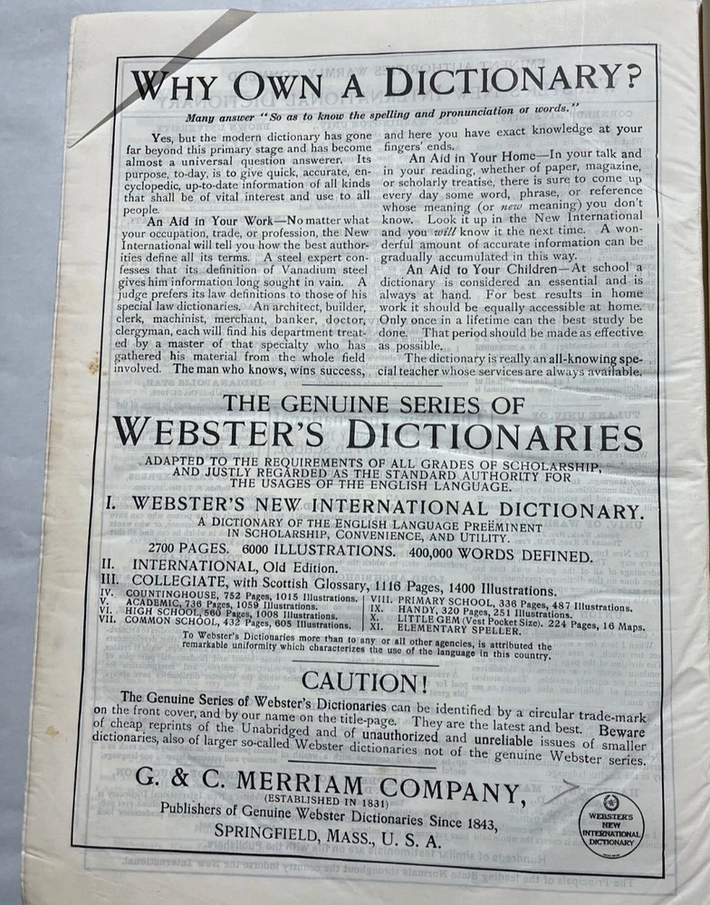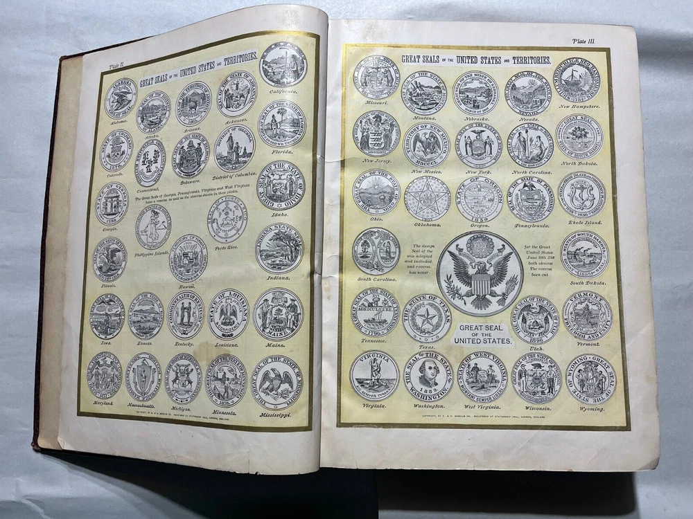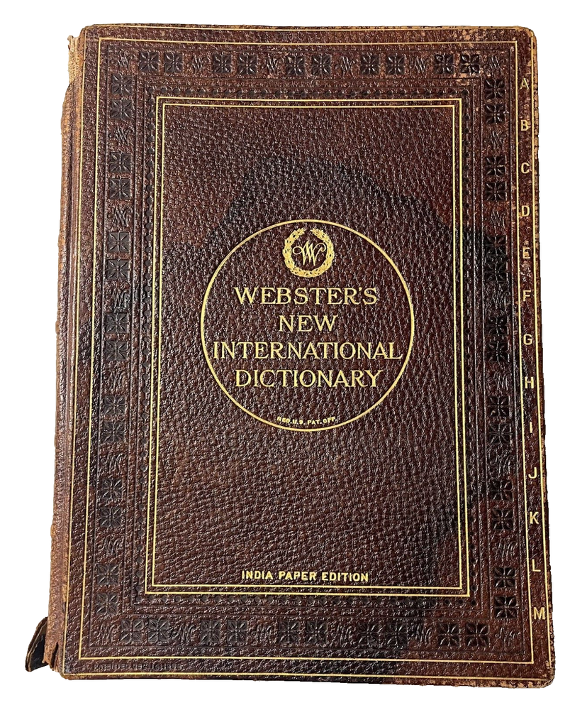 A rare, Vintage, Webster's New International Dictionary of the English Language, India Paper Edition. Based on the International Dictionary of 1890 and 1900. Published by G. & C. Merriam Company in 1913. Extra Large, full leather binding with indexed page tabs on the inside edge. There is some damage to the outside cover as shown in the pictures, along with some water marks...but overall, given the age of the book, it's in good condition. This dictionary has beautiful color images of the Flags of the United States, Seals & Territories, Arms of Various Nations, Flags of other Nations, and a lot of Pictorial images of various things in the back. Approx 12.25" tall x 9.50" wide x 2.75" thick Please feel free to contact me for any questions or more photos. I will make every attempt possible to resolve any issues. Items usually ship same or next business day, USPS, with exceptions of holidays or weekends Payment is due in 1-2 days No returns, so please read description Fast Shipping Pre-owned, overall good condition given age of the item