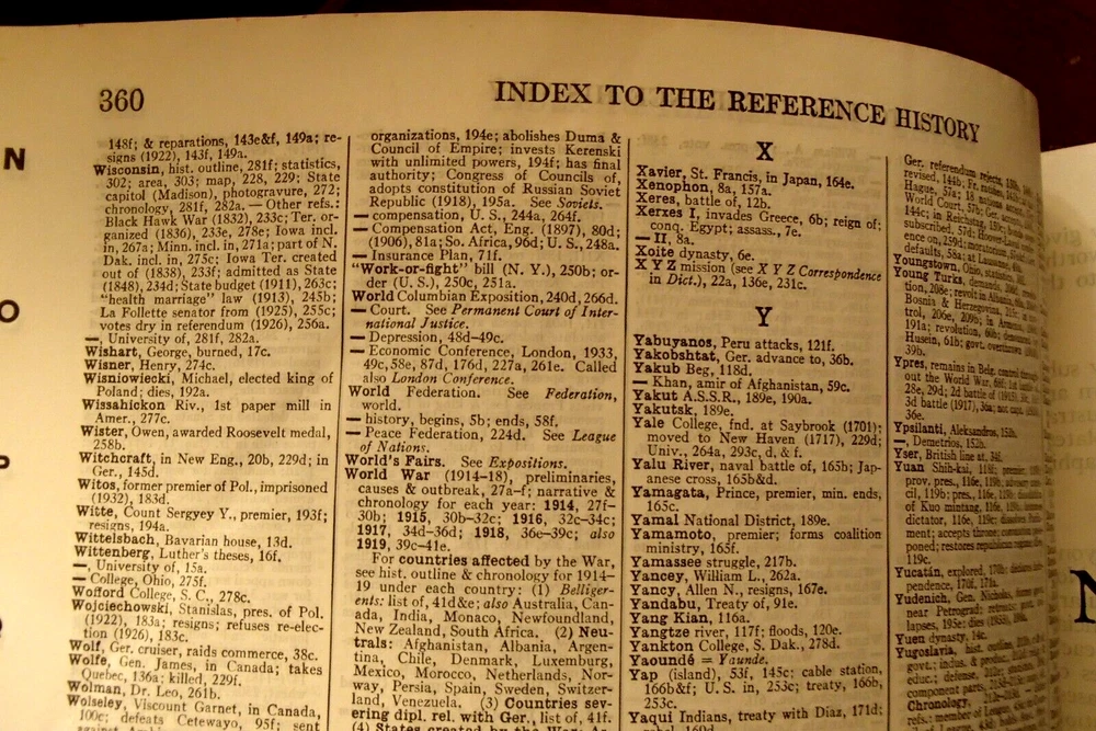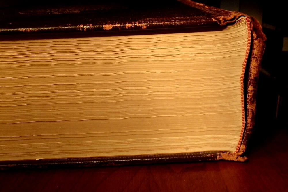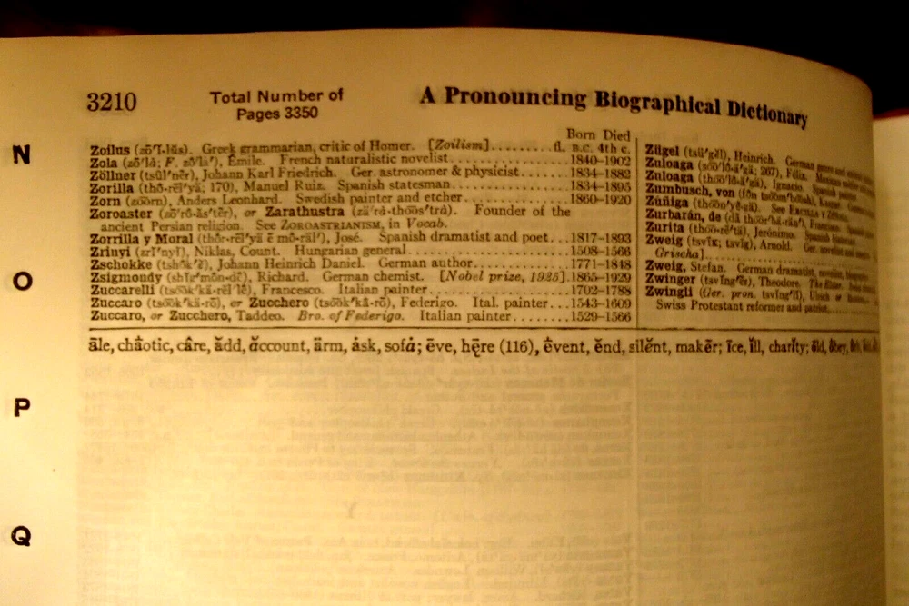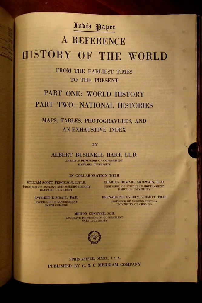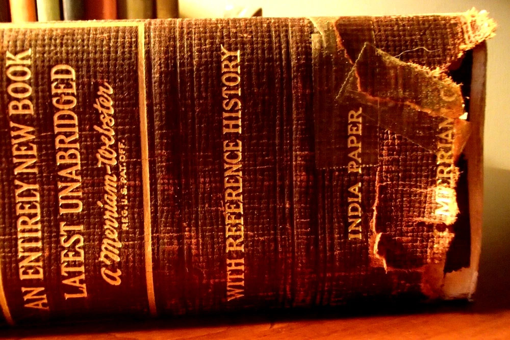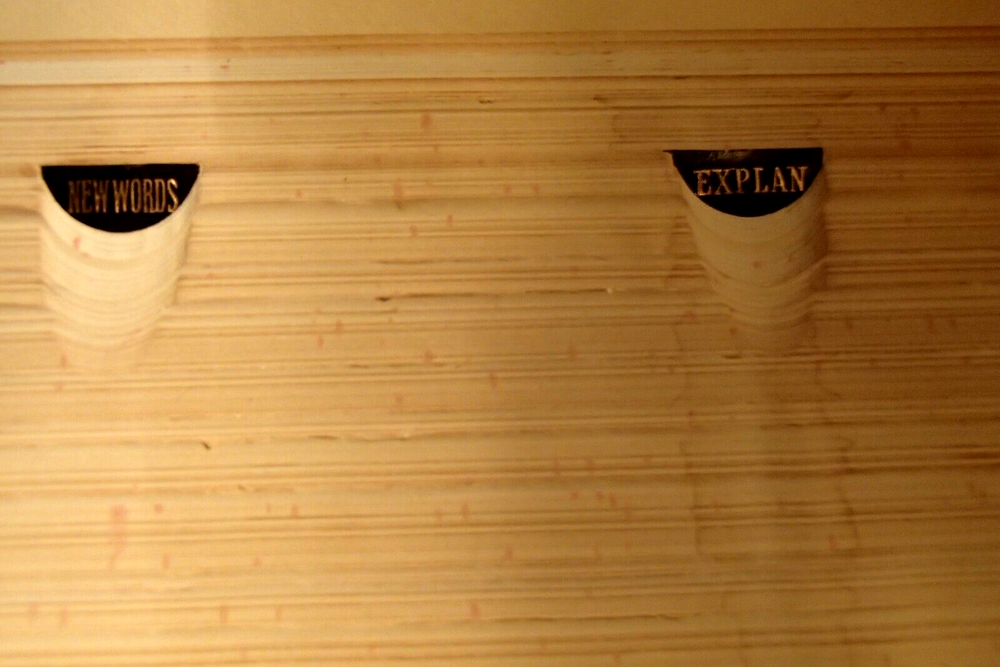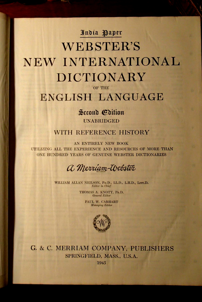 This beautifully illustrated leather-bound dictionary has been in my family's library for decades. I am neither a collector of antiquarian books nor am I a dealer so I urge you to examine the pictures carefully and do feel free to ask any questions you may have. It measures approximately 12" X 9 1/2" and is 3350 pages in length with an additional reference history section that is 360 pages long. I see absolutely no writing of any kind inside. There are no crinkled, earmarked or torn pages. There are rips in the leather cover on the spine but the binding seems very intact to me. Someone applied tape to the leather to stop it from becoming more damaged and I made no attempt to remove it. Thanks for looking I will wrap the book and ship in a secure box via USPO Media Mail