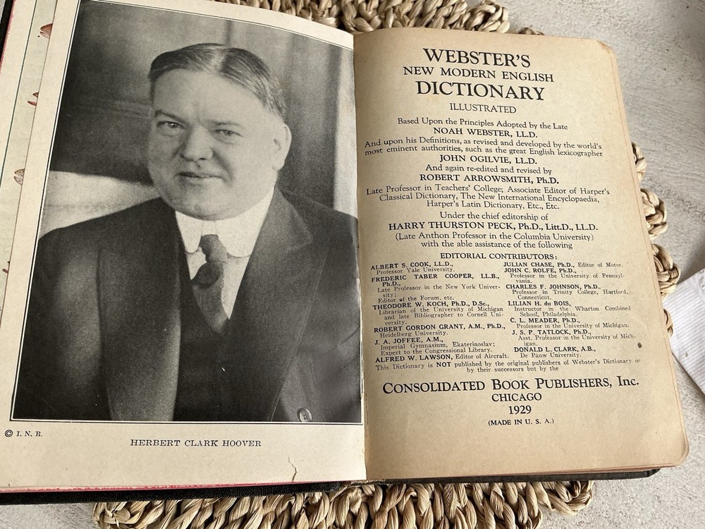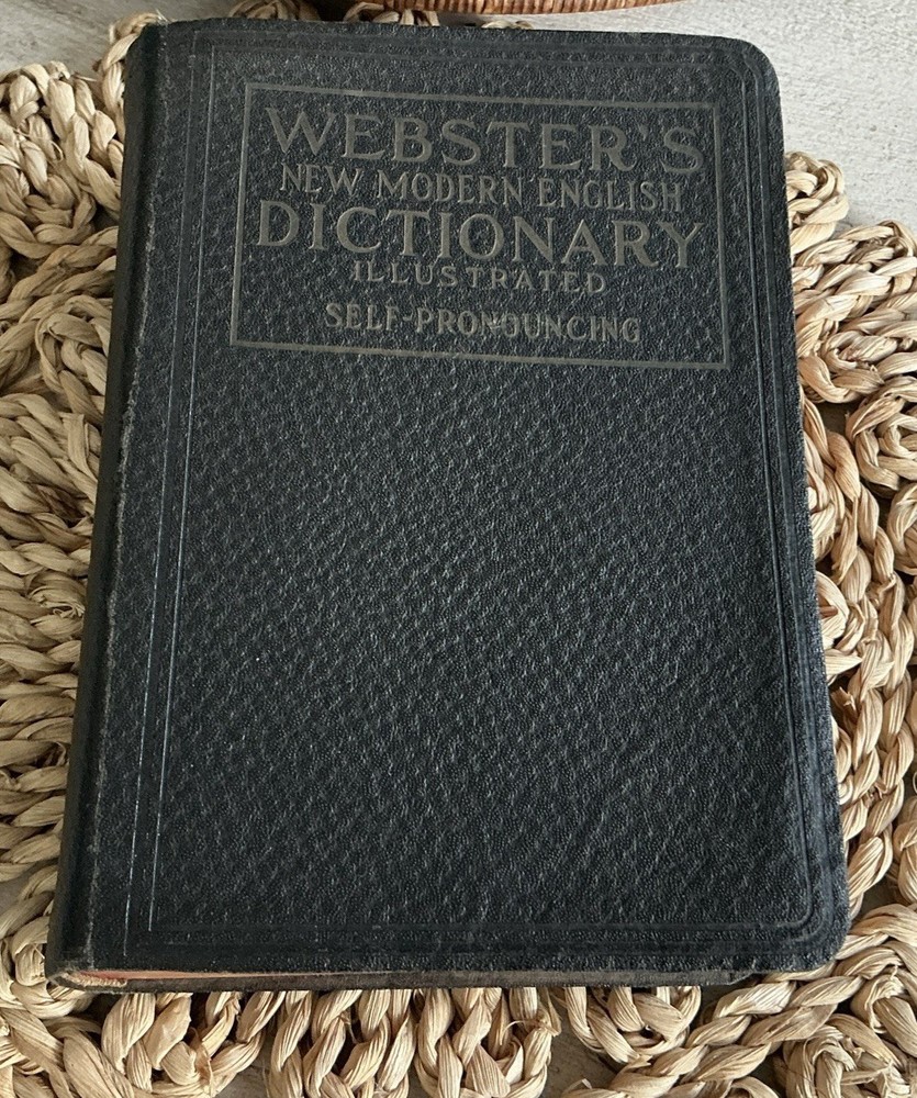 Webster's New Modern English Illustrated Dictionary 1929 Self - Pronouncing Measures: 7.5” x 5” The item been looked over for any cracks, chips or broken pieces and this item is free of any. This is a vintage item and please note, vintage means: A unique craftsmanship, unique, hard to find, one of a kind, nostalgic feeling or memories, its age is usually over 20-25 years old or older. The item has been used, previously, may show some signs of cosmetic wear, but fully functionally operational as intended. NOTE: My intention is to always bring the best description, and let you know if there are any imperfections with the item. It is not my intentions to sell an item broken, or defective, please remember if the item comes to you with any unmentioned imperfections, it was an honest mistake or overlooked, which we all make. And you are covered by the Return policy w/ Money Back Guarantee. I hope you love this item as much as I do. Happy Shopping.