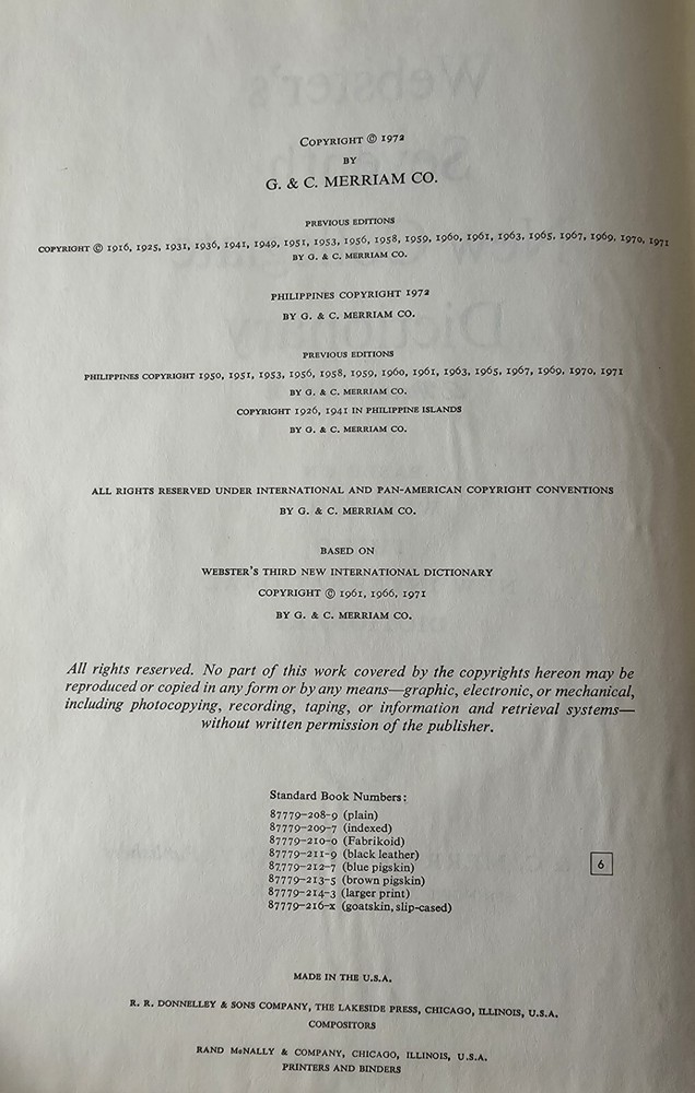 This is a hardcover copy of Webster's Seventh New Collegiate Dictionary, published by G. & C. Merriam Company in 1972. The book is written in English and has a faux leather bound cover. It is a reference book categorized under Books and Magazines, with a specific topic of Reference. The dictionary is perfect for students and anyone who wants to expand their vocabulary. It contains a wealth of information on words and their meanings, and it is a great addition to any book collection. The publication year is 1972, and the format is hardcover. Get your hands on this valuable reference book today!