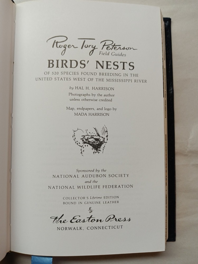 Up for sale is a Western Birds' Nests Roger Tory Peterson Field Guide Easton Press Leather With Gilt Edges and Silk Ribbon. In very fine pre-owned condition.Please look at my pictures for condition. Shipping is U.S.P.S. Only. We will Combine Shipping. Buy with confidence Fast Fair Shipping. U.S.A. seller Our goal is to keep our customer's Happy. Happy Shopping.