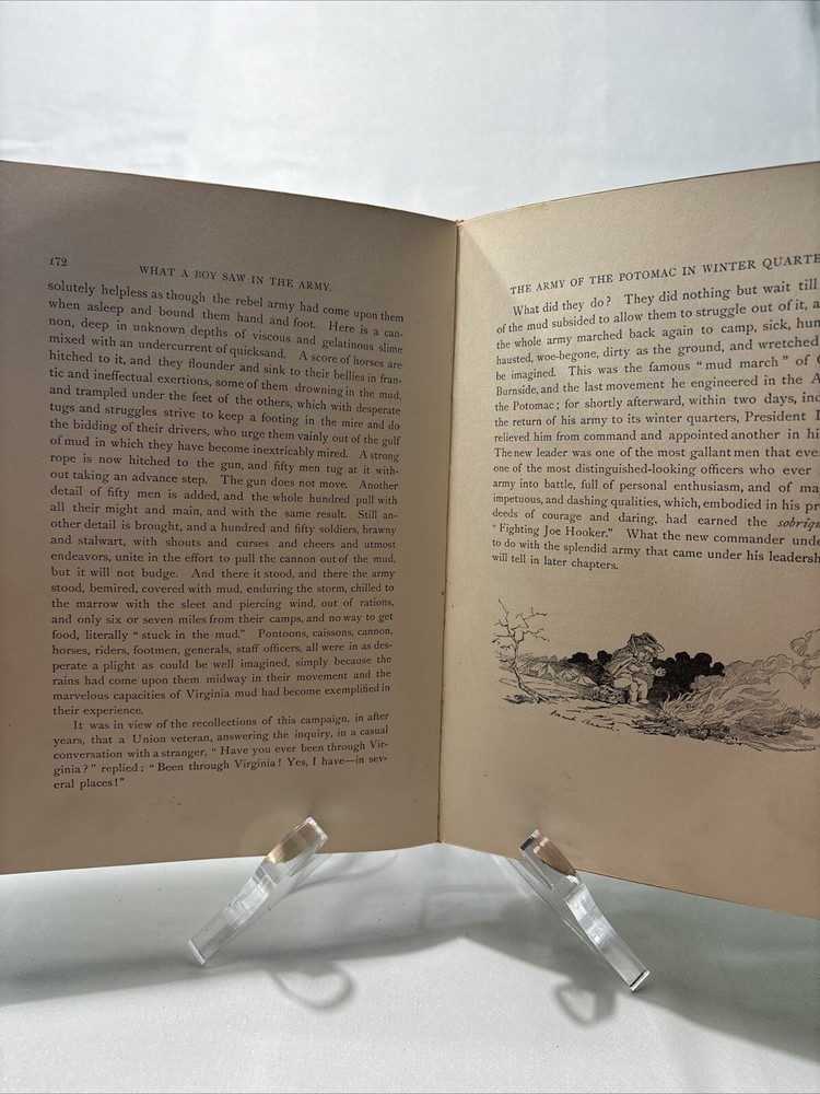 This is an original copy of "What a Boy Saw in the Army" by Jesse Young, published in 1894 by Hunt & Eaton in New York. The book is bound in leather and written in English. It is a historical piece that provides a unique glimpse into the past, specifically the American Civil War. The book is a great addition to any collection and a must-read for history enthusiasts. See pictures for imperfections.