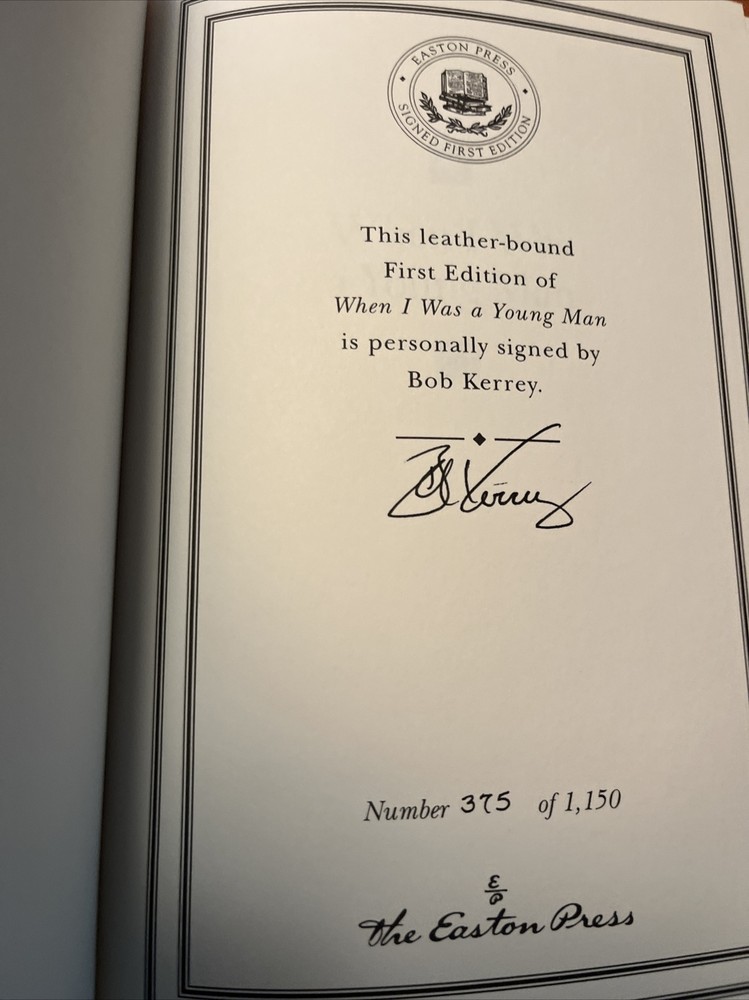 When I Was A Young Man, Memoir, Bob Kerrey, Easton Press, Bound in Genuine Leather, Number 375 of 1,150, Like New.