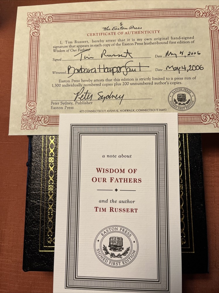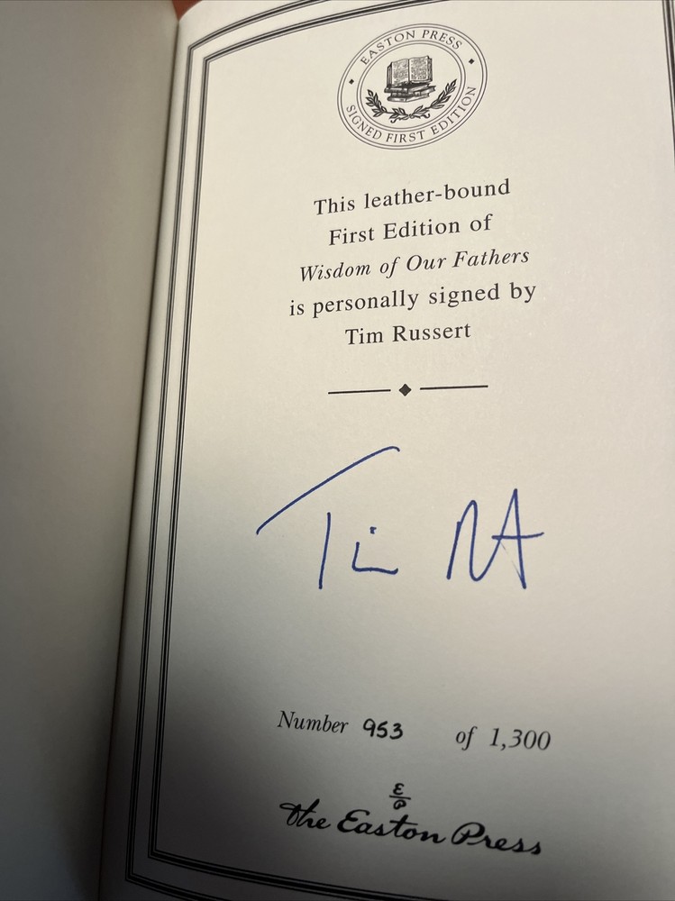 Wisdom Of Our Fathers, Tim Russert, Signed First Edition, Easton Press, Bound In Genuine Leather, Number 953 of 1,300, Like New.