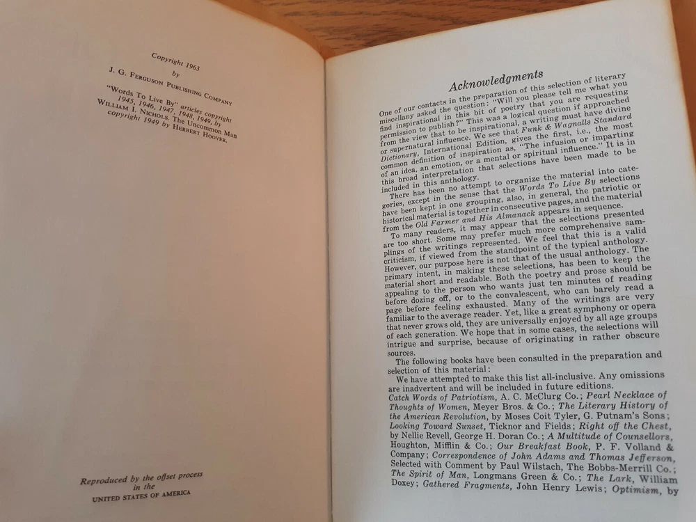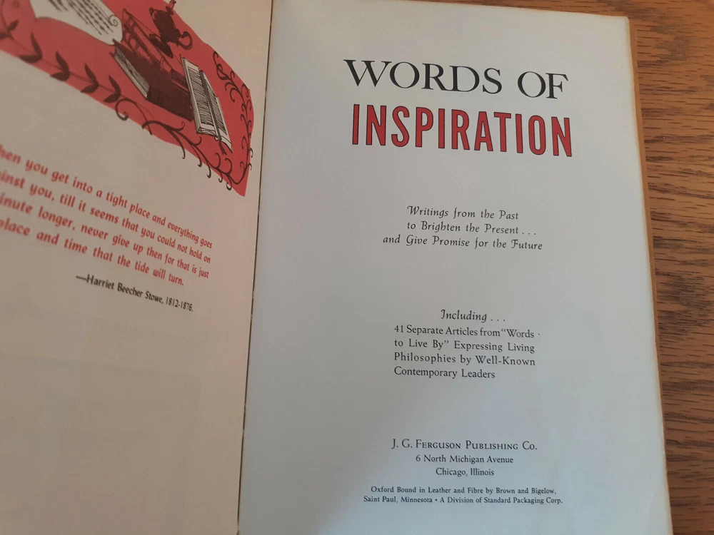 Words Of Inspiration 1963 Writings From The Past To Brighten The Present Leather There is some wear to the cover. The book has wear on the corners. There may be some marks in or on the book. Books are stored on a bookshelf in A/C. They are in a dark room and are well maintained. If you have any questions or concerns about this book please contact me. Listing and template services provided by inkFrog