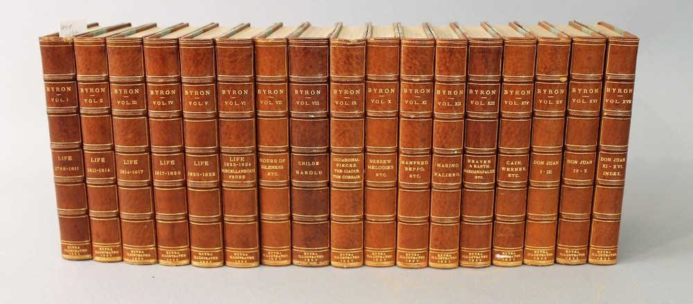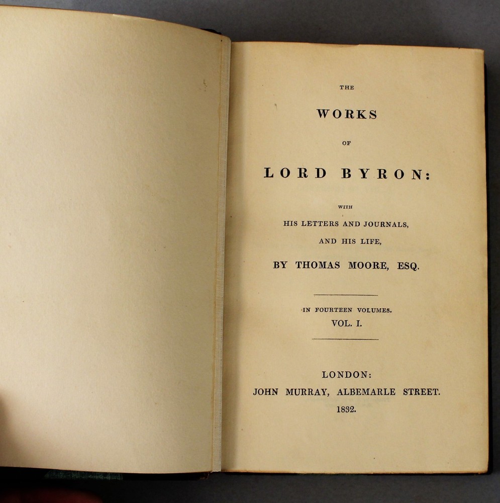 Works of Lord Byron 17 volumes copywright London John Murry, Albmarel Street 1832 Leather Bound by Birdsall, Northampton. In near perfect condition with very minor scuffing on the spine edge. A beautiful addition to any library. Posted with eBay Mobile