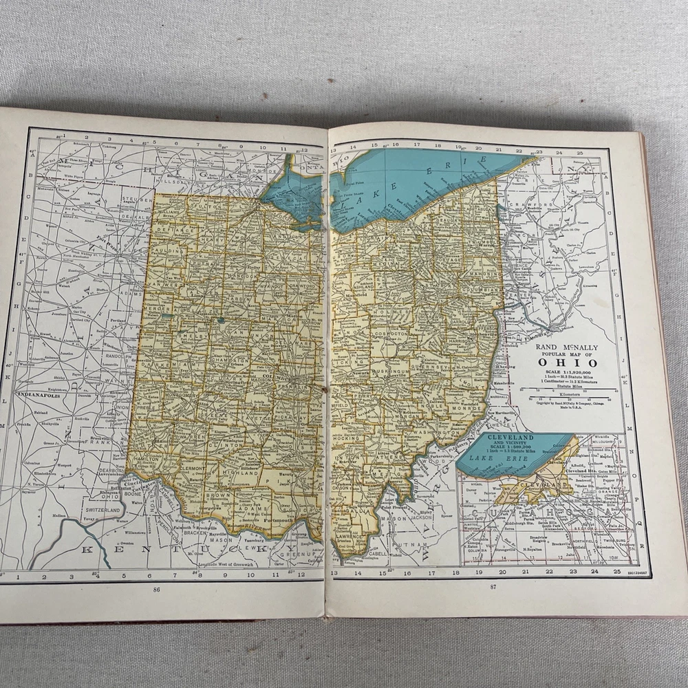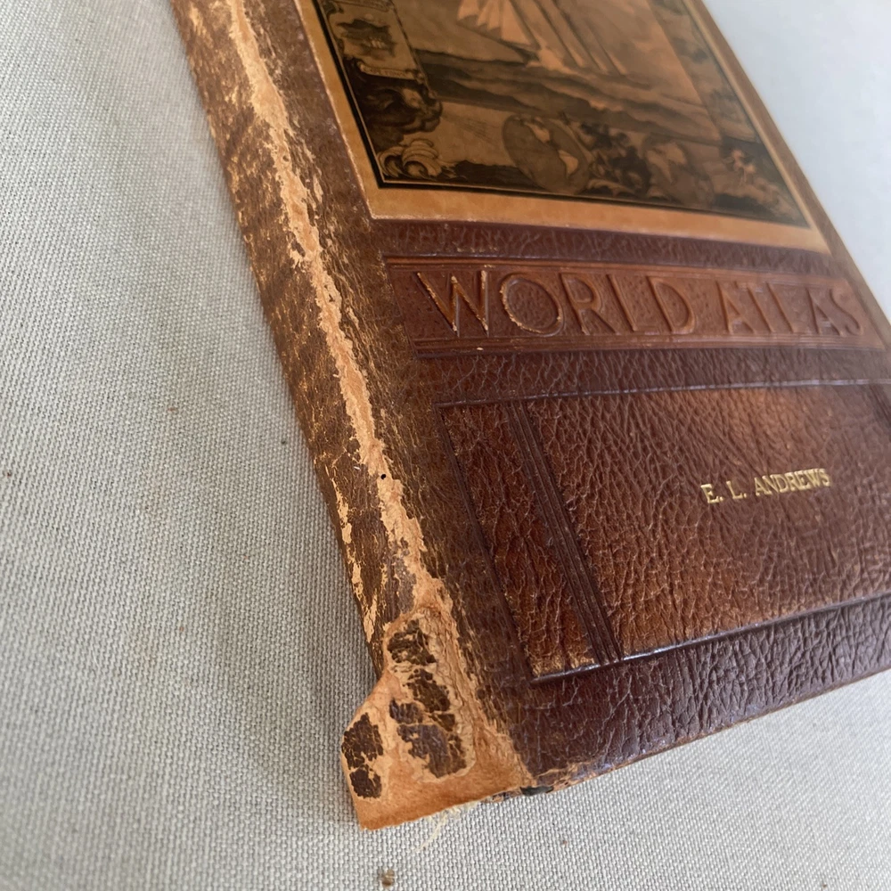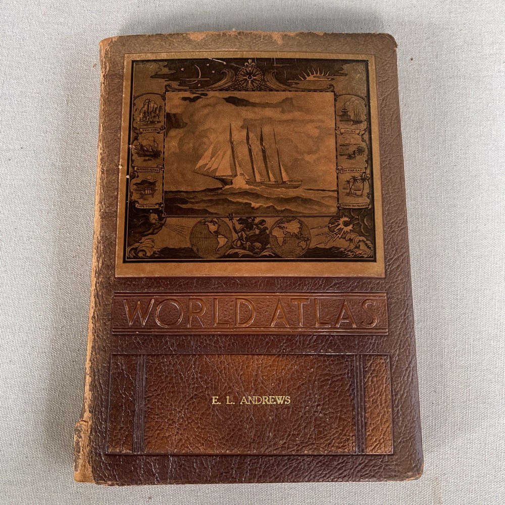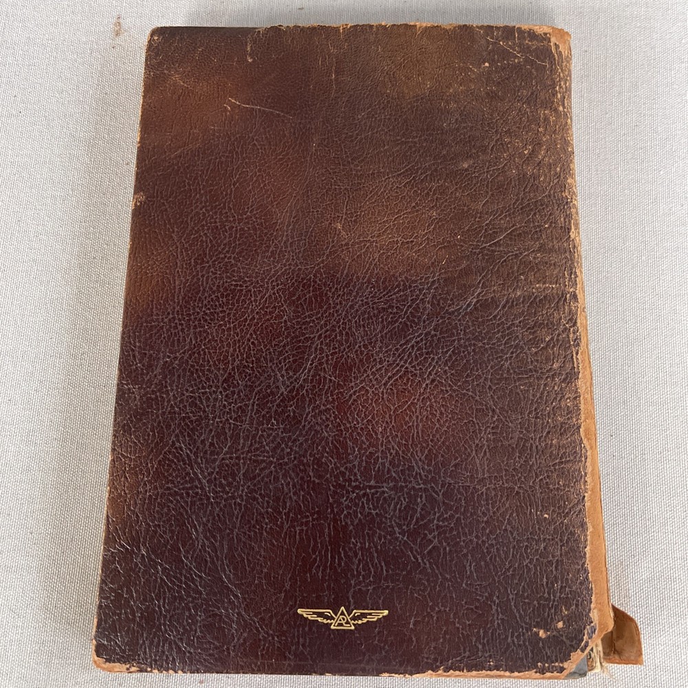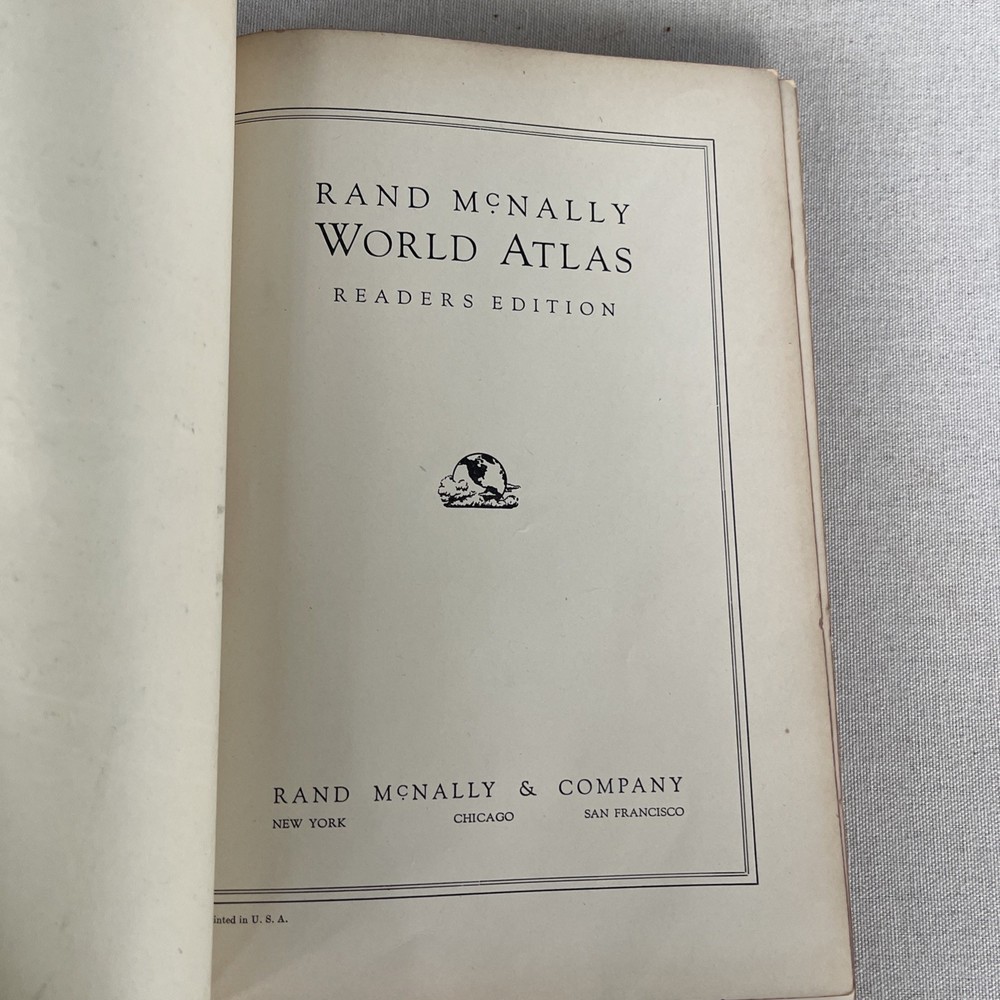This is a rare and valuable find for collectors and history enthusiasts alike. This 1943 World Atlas by Rand McNally & Company features the war zones of WWII and is a must-have for anyone interested in historical geography. The atlas is beautifully bound in leather and personalized, making it a unique addition to any collection. The publisher, Rand McNally & Company, is known for producing high-quality atlases and this original piece is no exception. The atlas covers various topics including maps, globes, and cartography, and is a valuable resource for anyone interested in reference books. This piece was printed in 1943, making it a piece of history in itself. Cover shows wear, see pictures. Pages of book in good clean condition.