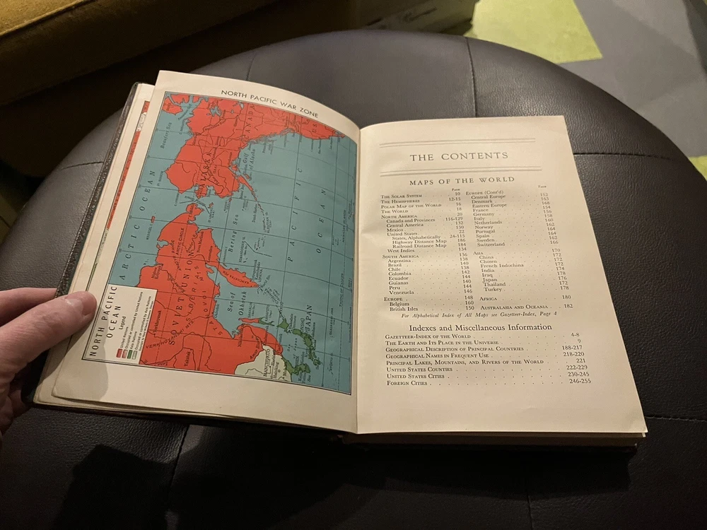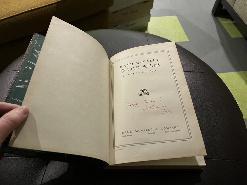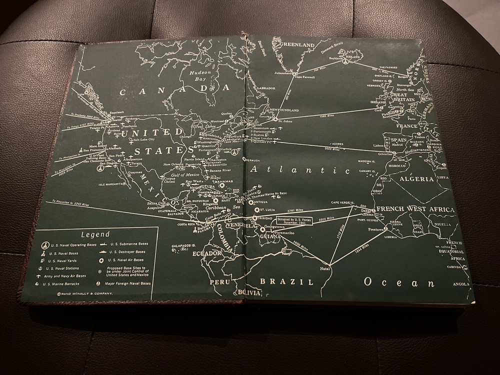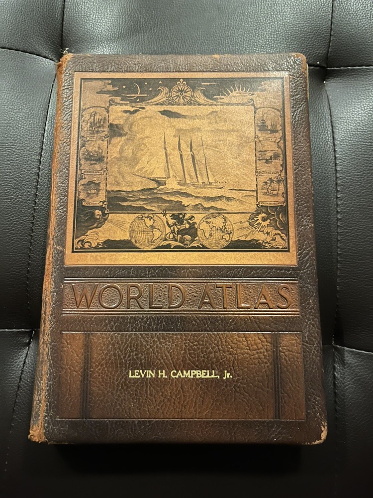 World Atlas, 1943, Rand McNally, leather bound, owned by Lt. General Levin H. Campbell, Jr. See photos. Nice book and piece of history! This is the leather-bound, 1943 Rand McNally World Atlas. Features detailed maps of various countries and regions around the world. The cover of the Atlas is made of high-quality leather, which has aged well, though the spine has some wear. Original owner's name is embossed in gold on the front cover, giving it an elegant and timeless look. In this case, that was Levin H. Campbell, Jr., which I assume this Lt. General -- see his Wikipedia entry! https://en.wikipedia.org/wiki/Levin_H._Campbell_Jr.