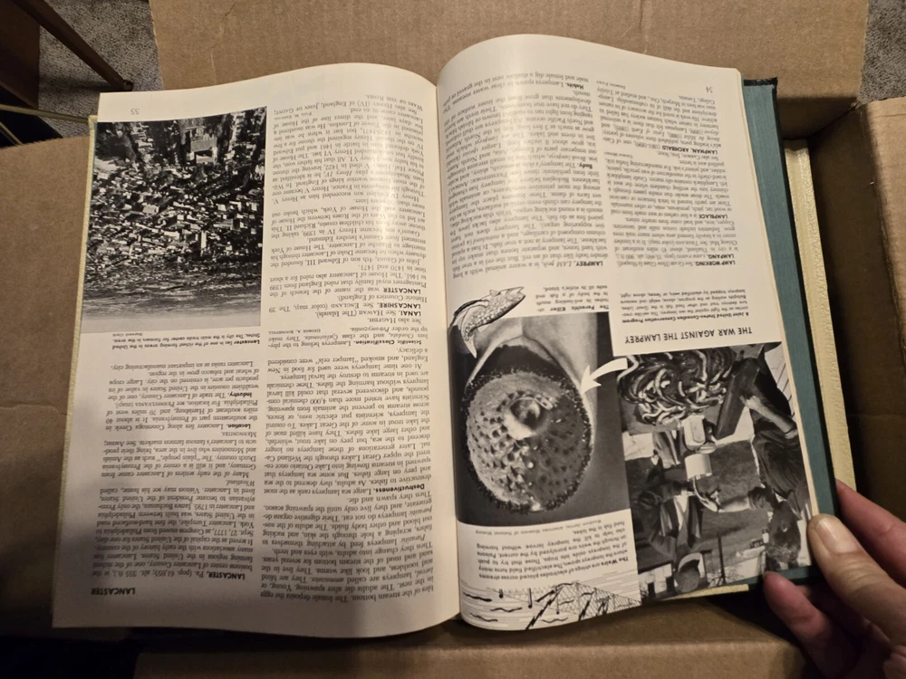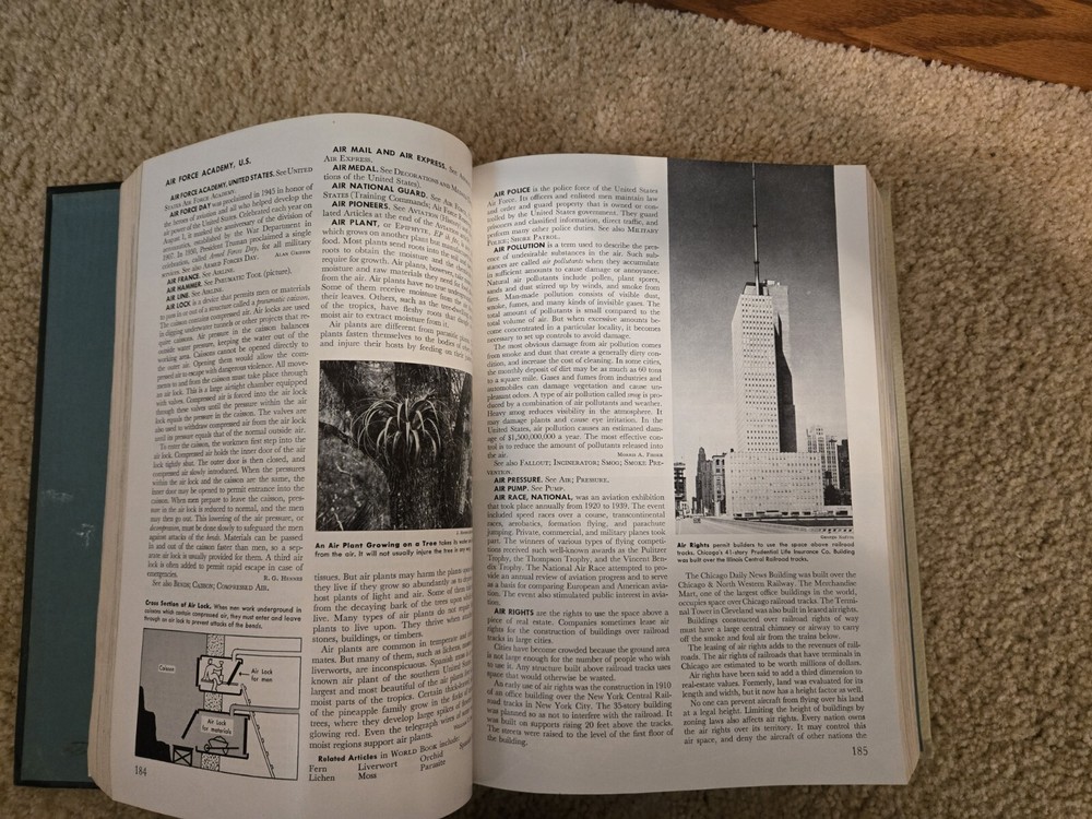 This is a hardcover "The World Book" Encyclopedia Set with a last copyright date of 1964. One of the books had a little "puppy love" but it is still a beautiful set. I have tried to show any flaws in the pictures and have tried to reflect the flaws in the price.