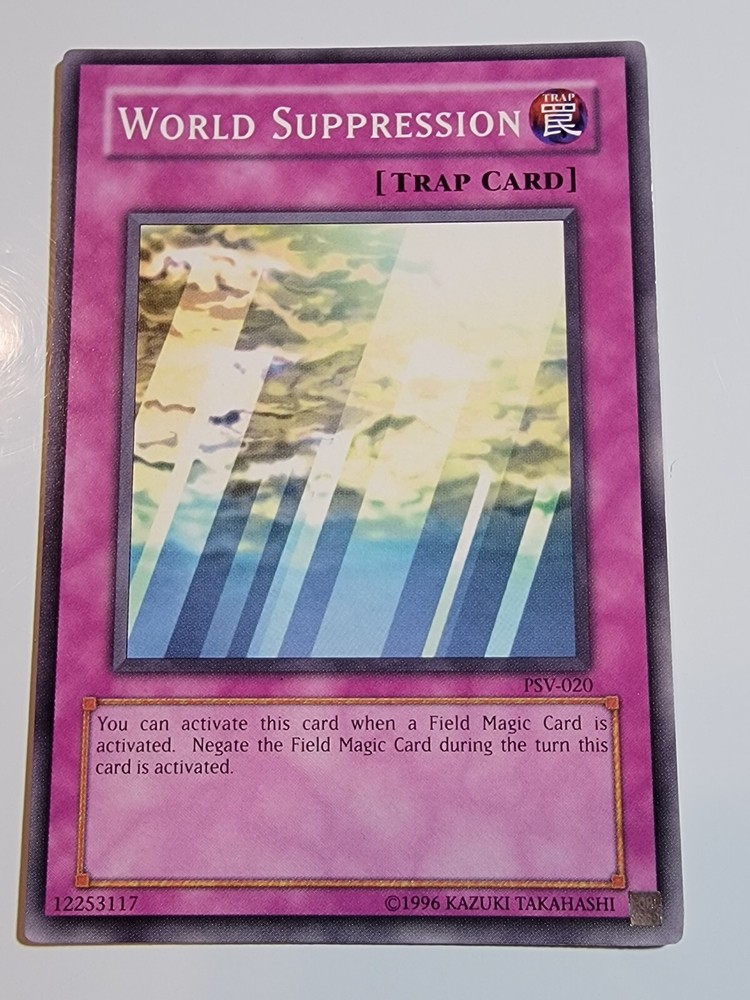 World Suppression PSV-020 Common Unlimited Yugioh. Overall lightly played condition. (Please reference pictures for c osmetic condition). Take advantage of our multi item discount!!! When you buy 2 items you will have the opportunity to select a 3rd item of equal our lesser value for free from our whole inventory. (Must use Ebay's shopping cart feature in order to take advantage of this discount). If you have any inquiries please feel free to message us and we will respond as soon possible, usually within 24 hours. SHIPPING We almost always use USPS as our primary SHIPPING service. We ship within 24 hours of receipt of payment and will always provide tracking, unless otherwise stated in the listing. (We reserve the right to use a different carrier or service). FEEDBACK Your FEEDBACK is important to us as a growing small business. If for any reason you are unhappy with your transaction, please message us and we will do everything in our power to make it right. Returns Returns are accepted within 30 days of confirmation of delivery. If there is anything you are unhappy about with your purchase please message us and we will respond within 24 hours to your concerns. Thank you for supporting our small business. We appreciate your valued business with us and look forward to serving you in the future. Dan & Tonya Dio's Eclectic Treasures