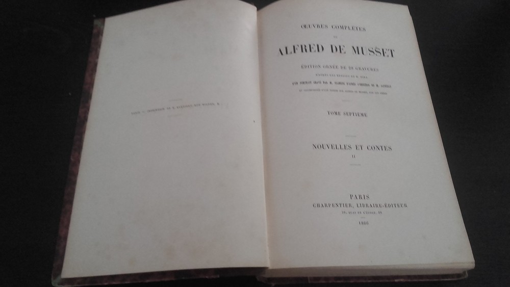 Complete works A. de Musset News & Tales Ornate of engravings Volume 7 1866 ABE *********** Fairly good ********* For this binding Half veal Nerve ornne back rubs Jaspes rubbed dishes Cozy corners Jaspees guards Leaflets with freckles * 23.5 X 15 cm In 8 345 pages * Complete works A. de Musset News & Tales Ornate of engravings Volume 7 1866 ABE *********** Fairly good ********* For this binding Half veal Nerve ornne back rubs Jaspes rubbed dishes Cozy corners Jaspees guards Leaflets with freckles * 23.5 X 15 cm In 8 345 pages *