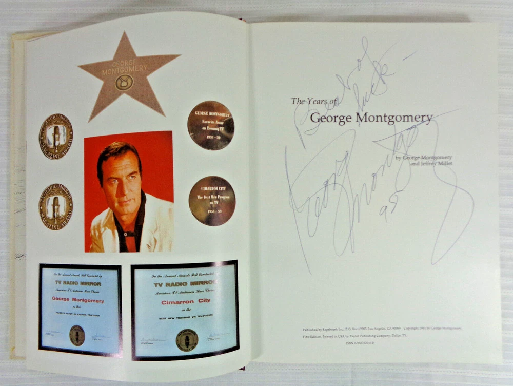 YEARS OF GEORGE MONTGOMERY SIGNED Deluxe Leather 1st Edition Film Actor Hollywood. The very large hardcover is clean and tightly bound. Signed twice by George Montgomery on a front fly page and on the title page! Thank you for viewing and please have a look at the other items for sale in my store at ScottyJoesBooks.