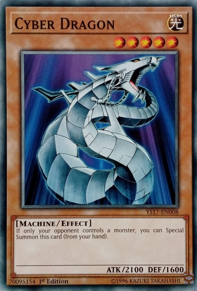 YS17-EN008 CYBER DRAGON COMMON 1ST EDITION ALL YU-GI-OH CARDS I SELL ARE KONAMI TOURNAMENT LEGAL. CARDS ARE ALL NEAR MINT TO LIGHTLY PLAYED CONDITION POSTAGE IS FREE SO YOU CAN BUY AS MANY CARDS AS YOU WANT FROM US AND NOT PAY A PENNY POSTAGE. IF YOU HAVE ANY QUESTIONS PLEASE FEEL FREE TO CONTACT ME. Track Page Views Wi4.9 Auctiva's FREE Counter