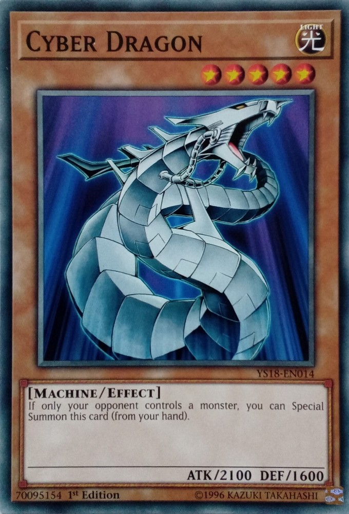YS18-EN014 CYBER DRAGON COMMON 1ST EDITION ALL YU-GI-OH CARDS I SELL ARE KONAMI TOURNAMENT LEGAL. CARDS ARE ALL NEAR MINT TO LIGHTLY PLAYED CONDITION POSTAGE IS FREE SO YOU CAN BUY AS MANY CARDS AS YOU WANT FROM US AND NOT PAY A PENNY POSTAGE. IF YOU HAVE ANY QUESTIONS PLEASE FEEL FREE TO CONTACT ME. Track Page Views Wi4.9 Auctiva's FREE Counter