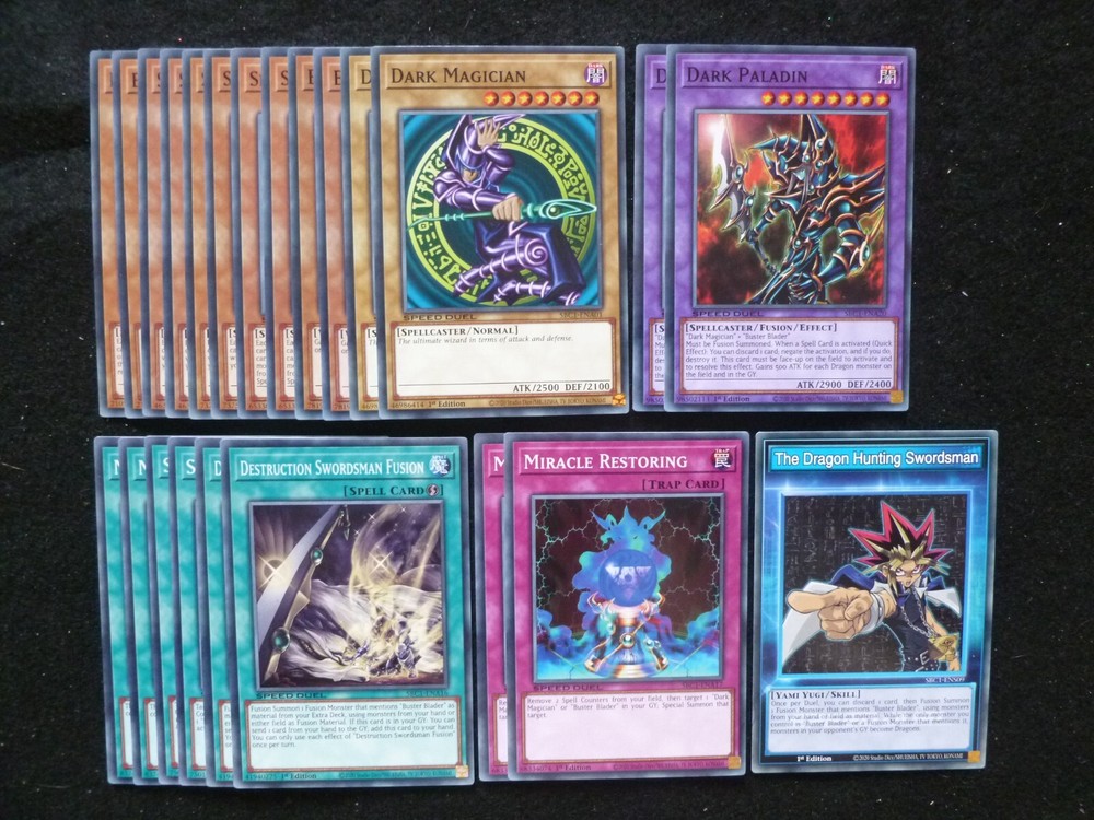 THIS IS A 22 CARD DARK PALADIN / YAMI YUGI SPEED DUEL DECK CONSISTING OF THE FOLLOWING CARDS: 2X DARK PALADIN 2X DARK MAGICIAN 2X BUSTER BLADER 2X SKILLED RED MAGICIAN 2X SKILLED DARK MAGICIAN 2X SKILLED WHITE MAGICIAN 2X BLAST MAGICIAN 2X DESTRUCTION SWORDSMAN FUSION 2X SPELL POWER GRASP 2X MAGE POWER 2X MIRACLE RESTORING THE DRAGON HUNTING SWORDSMAN SKILL CARD ALL YU-GI-OH CARDS I SELL ARE KONAMI TOURNAMENT LEGAL. CARDS ARE ALL BRAND NEW AND IN MINT CONDITION. POSTAGE IS FREE SO YOU CAN BUY AS MANY CARDS AS YOU WANT FROM US AND NOT PAY A PENNY POSTAGE. IF YOU HAVE ANY QUESTIONS PLEASE FEEL FREE TO CONTACT ME. Track Page Views With Auctiva's FREE Counter